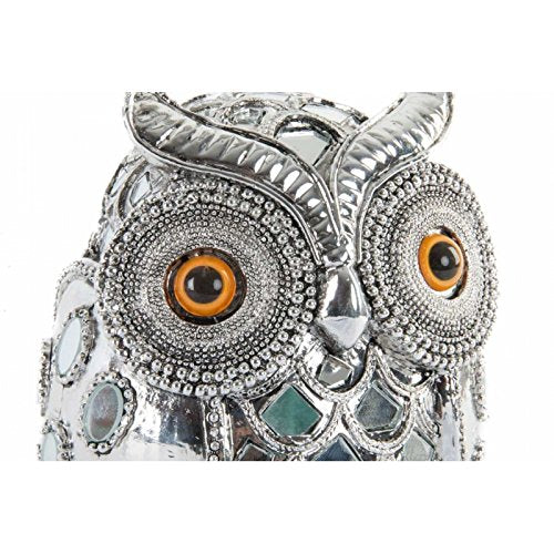 Figura Buho de Suerte Resina Plateado 8x8x11 cm