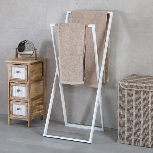 Toallero Metal con Madera bambú Estilo Nordico Plegable