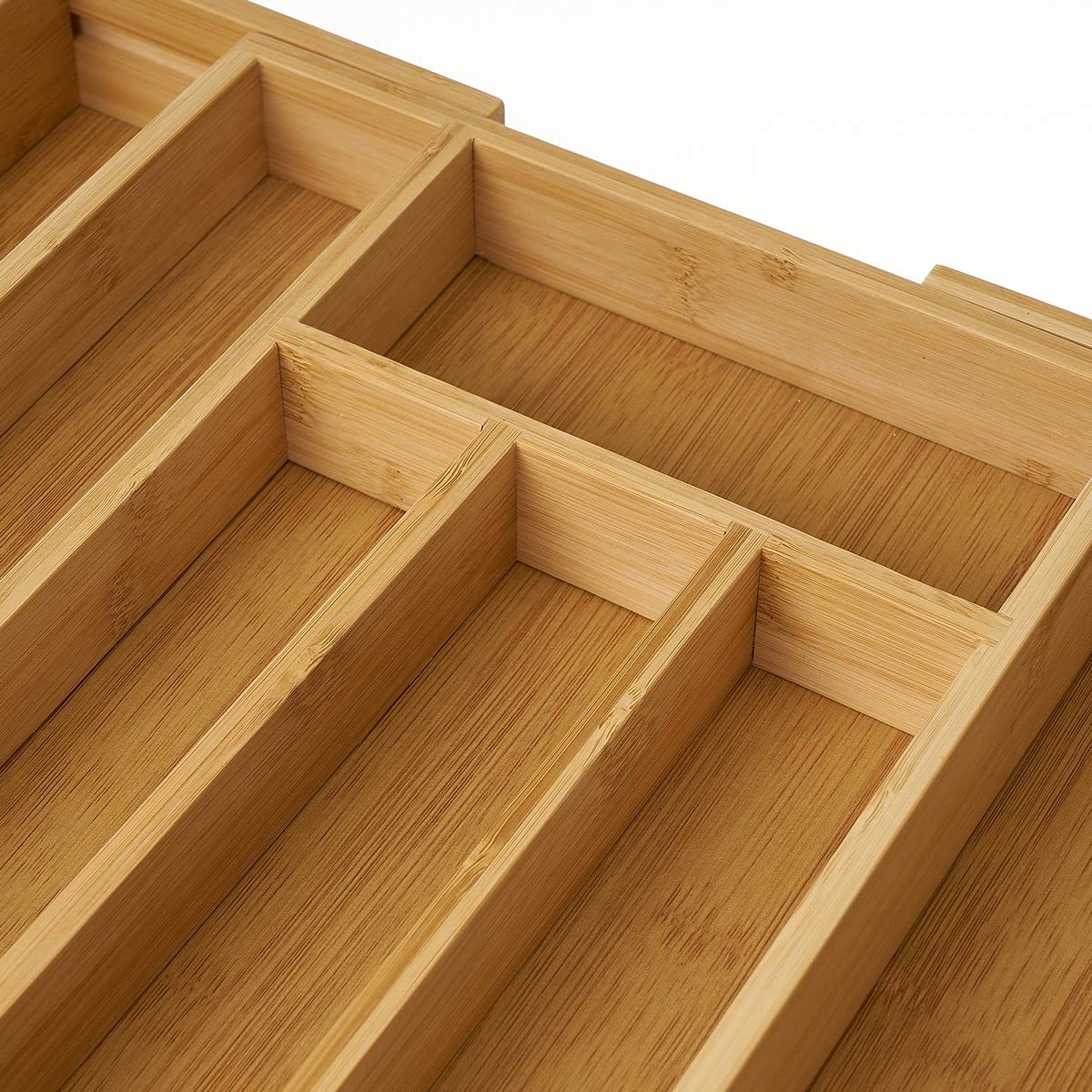 Bandeja para cubiertos extensible de bambú natural de 37x35 cm