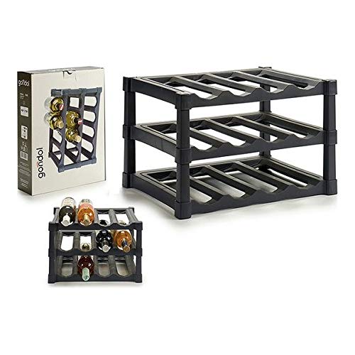 Botellero 12 Botellas negro plastico 30x39x25 cm