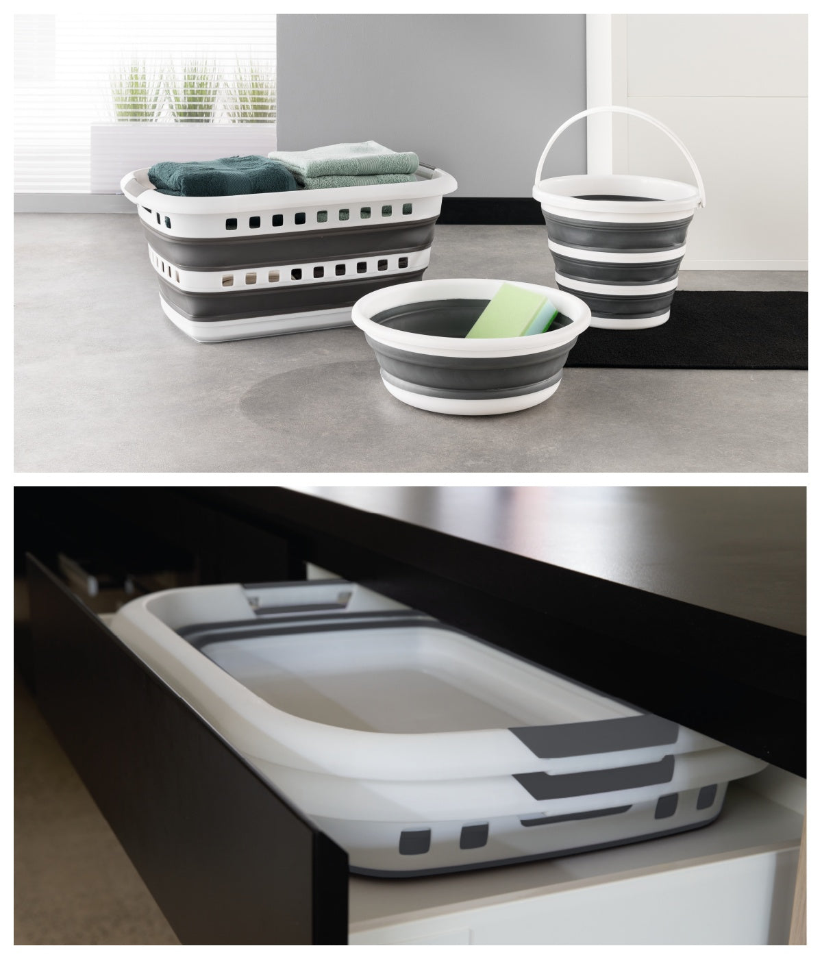 - Cesto de la ropa plegable 45L "Hugger" gris y blanco