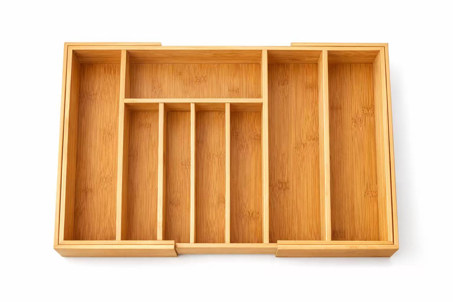 Cubertero de Bambú Extensible para Cajón de Cocina – Ajustable de 25,5 a 37 cm, 5–7 Compartimentos, Organizador de Cubiertos para Cajones Pequeños y Medianos