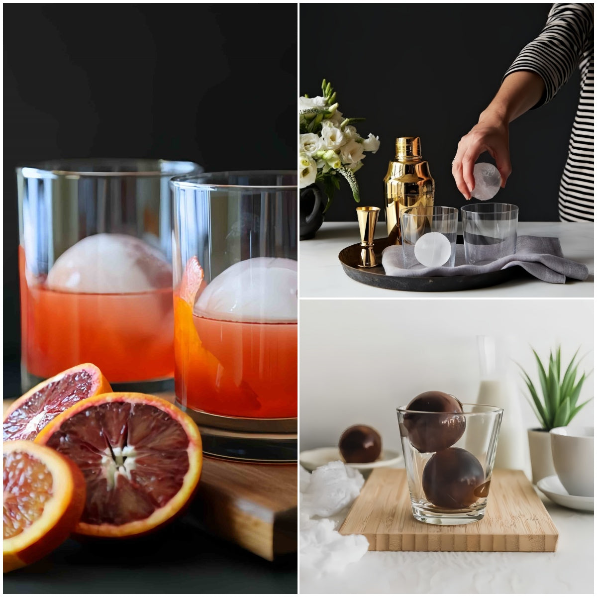- ✅Aplicación: Puede poner cócteles, whisky, vino, frutas, puré, té helado, café helado en la bandeja de hielo o agregar flores o rodajas de limón al agua para preparar bebidas aromatizadas. Ideal para fiestas, restaurantes, playas, celebraciones navideñas.