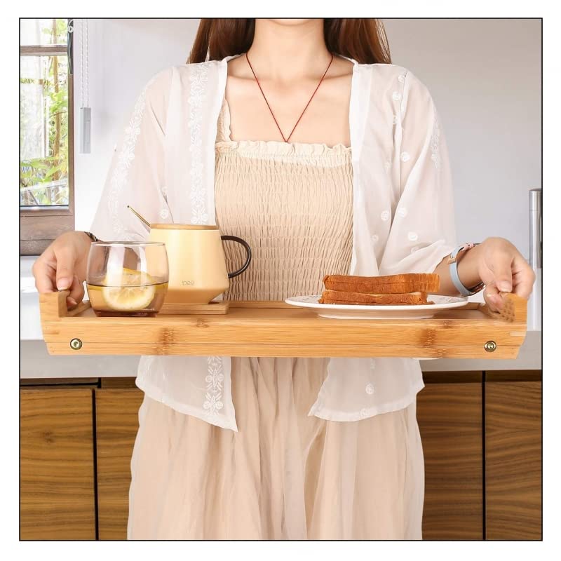 - Esta bandeja de cama es indispensable para el desayuno en la cama Con sus patas retráctiles, se convirtió rápidamente en una bandeja de servir.