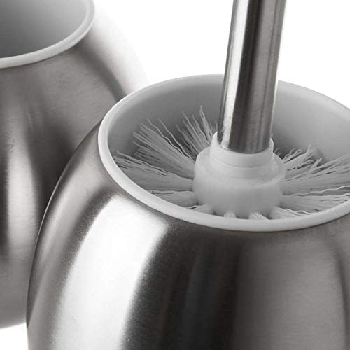 - Conjunto de dos escobillas de acero inoxidable plateadas para cuarto de baño. Sus medidas son: ovalada: 12,50X13,50X38,50 cm y redonda 14X11,70X37 cm. Quedarán perfectas en tu cuarto de baño y le aportarán un toque de diseño.
