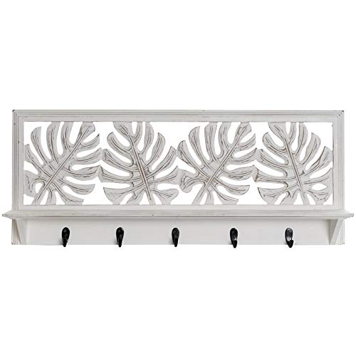 - Estantería con 5 colgadores para pared de madera tallado hojas
