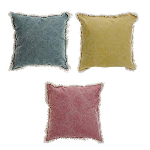 - Juego de 3 cojínes colores de algodon con flecos 45x45 cm