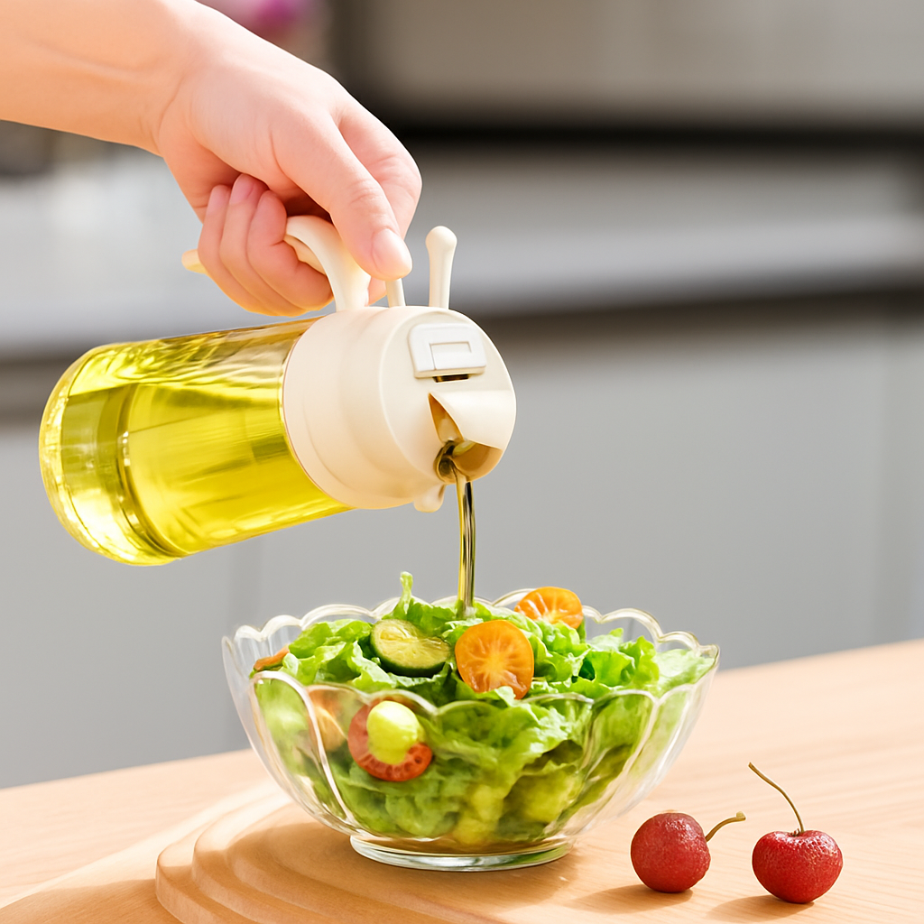 - 3️⃣ Antigoteo y sin residuos de aceite: El sistema de retorno automático evita el goteo y mantiene limpio el pico vertedor. Di adiós a las botellas que se ensucian o dejan marcas de aceite en la encimera.