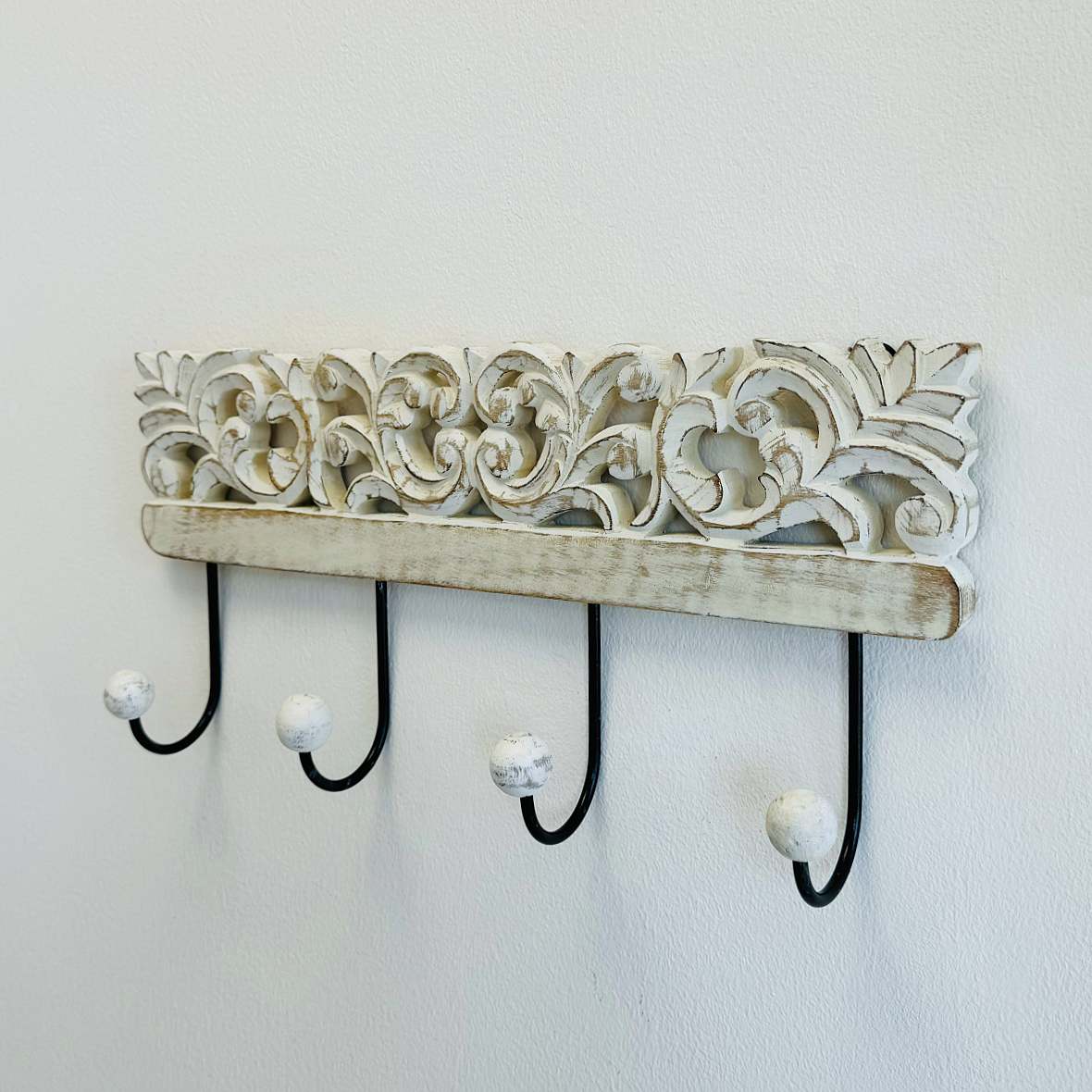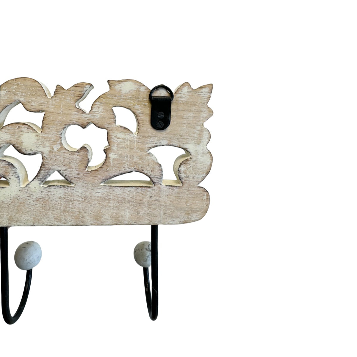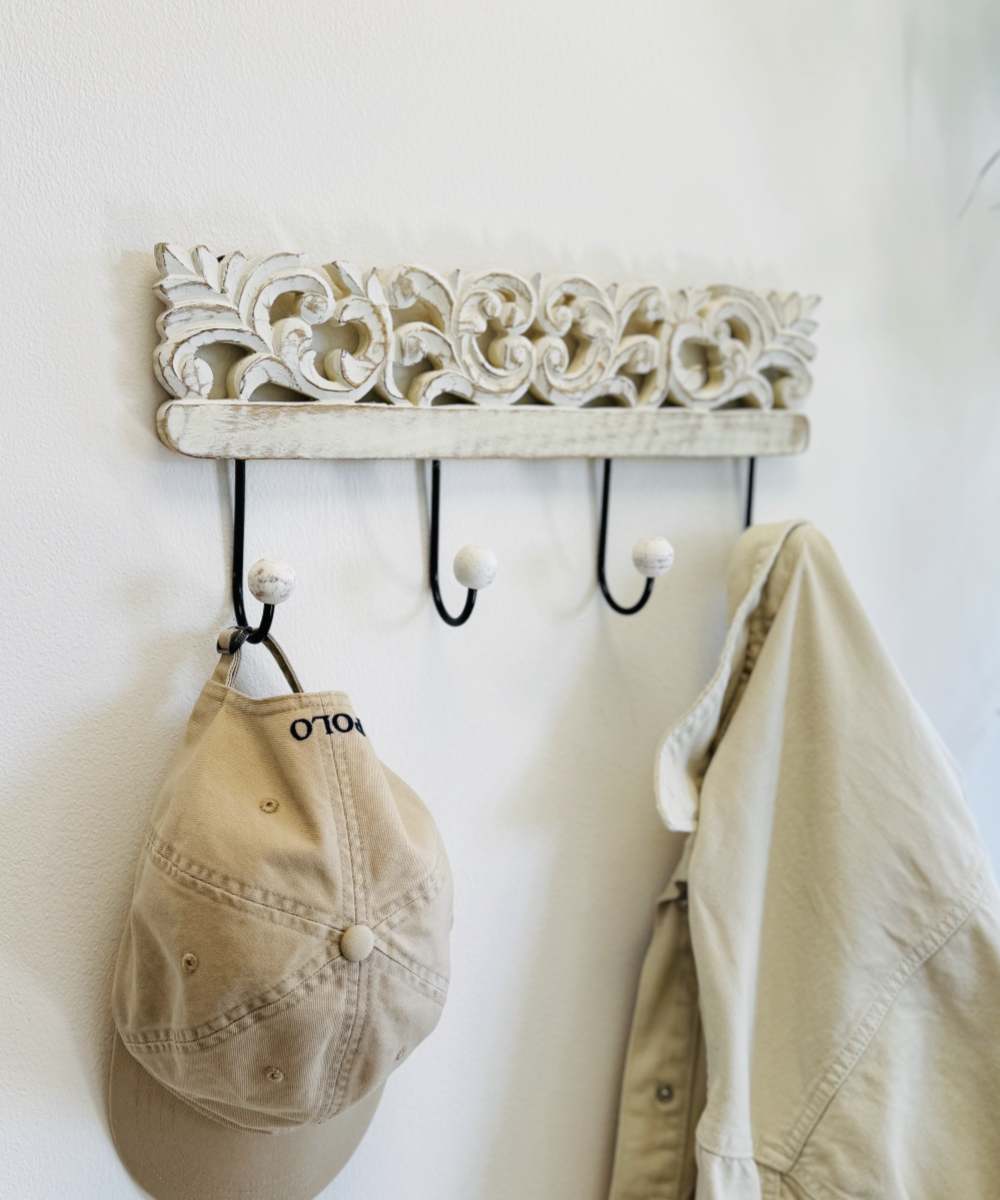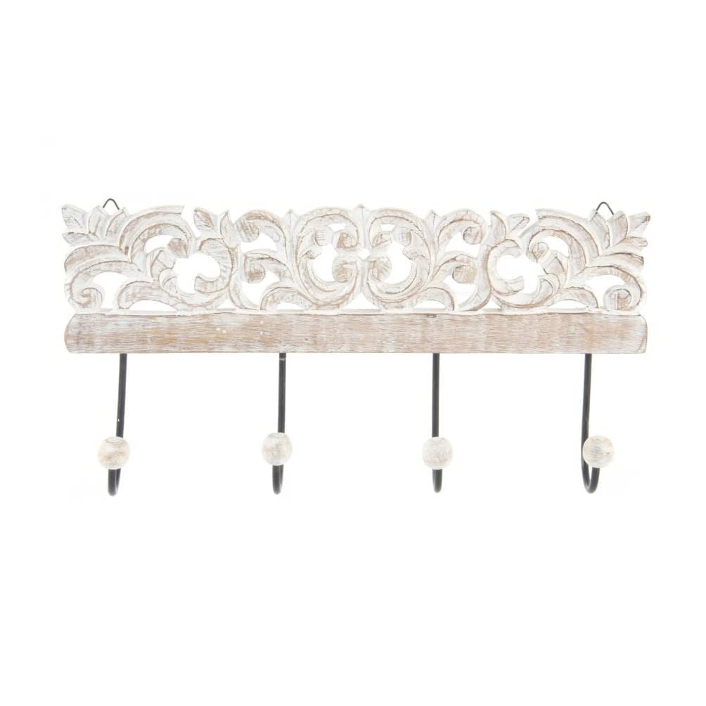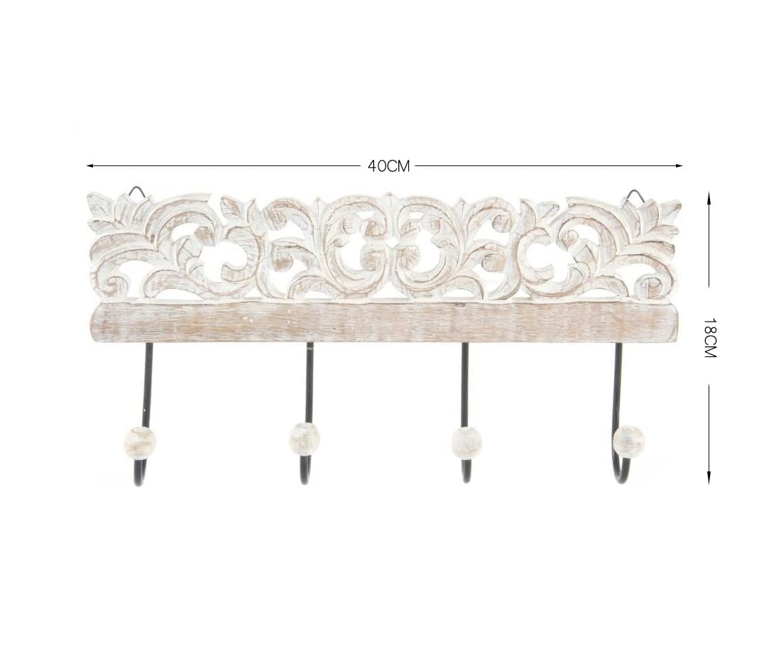 DAMDAM GO Perchero Pared 4 Colgador Madera Tallada, Percheros Pared de Diseño Para Recibidores, Entradas, Dormitorios, Habitaciones Infantiles y Baños 40x18 cm