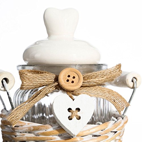 Bote con cesta romántico beige de cristal para cocina donde podrás guardar pequeños dulces o especies.