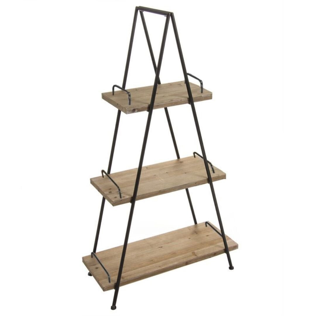 - Estantería tijera de 3 baldas industrial marrón de madera para salón.