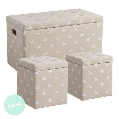 Juego de 3 Puffs banqueta corona beige, ideal para aprovechar espacio de su hogar al maximo ,