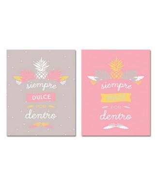 - Pack 2 cuadro fotoimpresión piñas con frase " Siempre dulce por dentro "