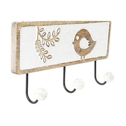 Perchero Pared 3 Colgador Madera Tallada pajaros