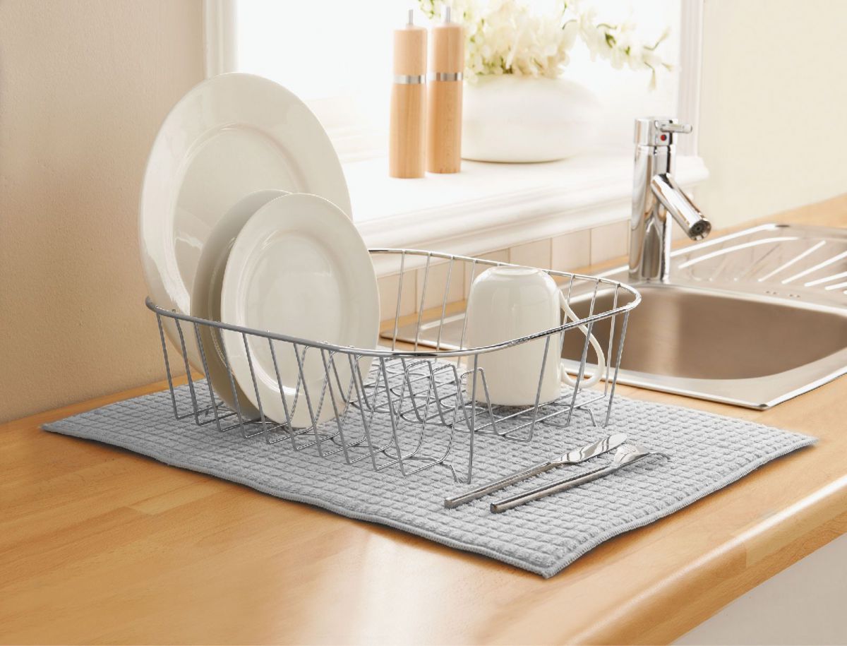 - MULTIFUNCIONAL: puedes dejar que atrape goteos debajo de un escurridor de platos para mantener el mostrador seco y limpio, o puedes colocar la vajilla directamente en la alfombrilla. También se puede utilizar para mascotas, colócalo debajo de la olla para mantener el suelo seco.