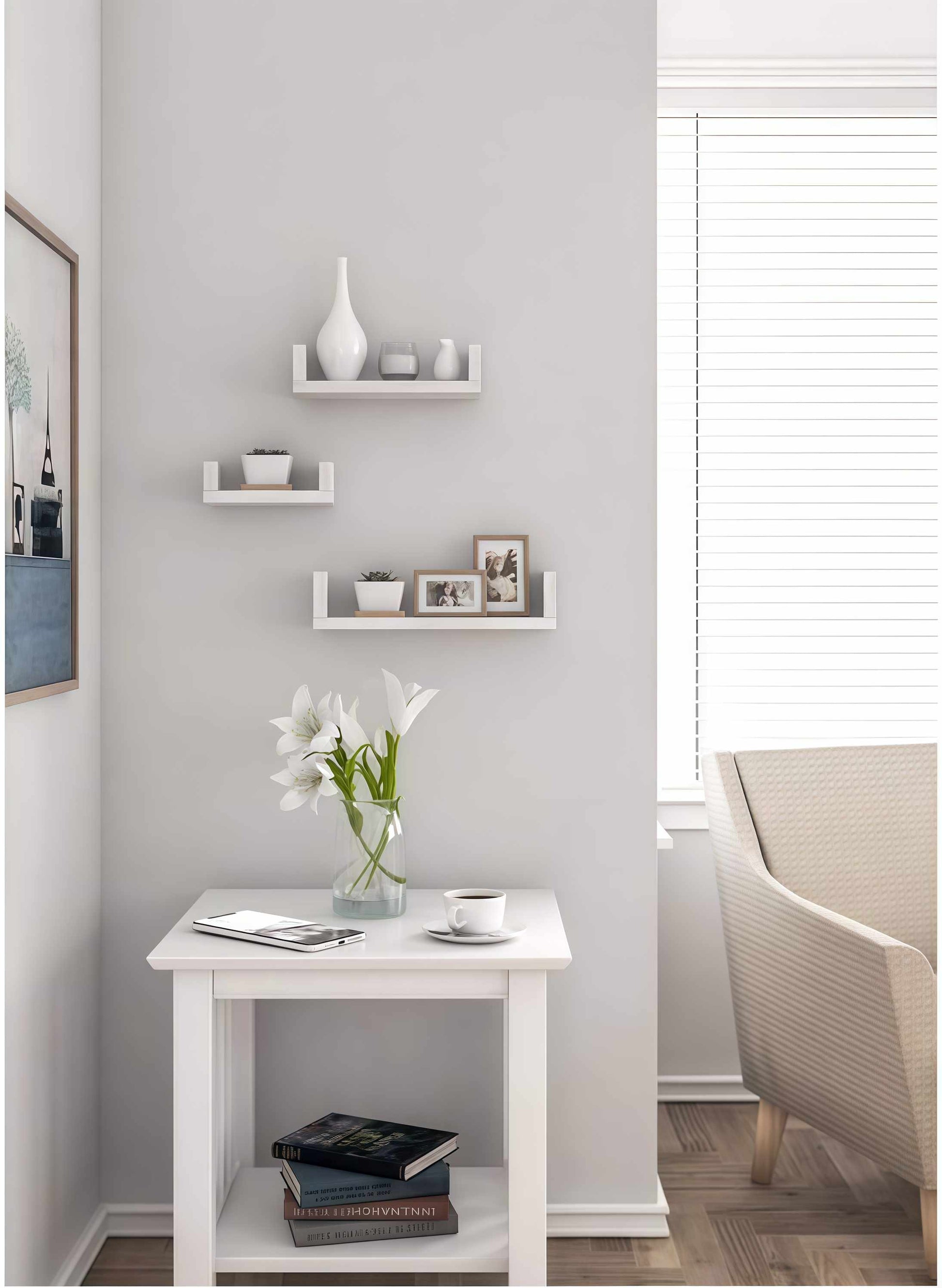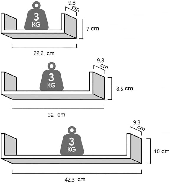 Estantería Pared en Forma U, Set de 3 Estantes Flotantes Juego de Baldas para Libros y Objetos de Decoración