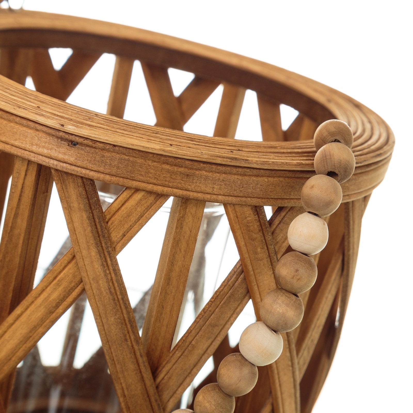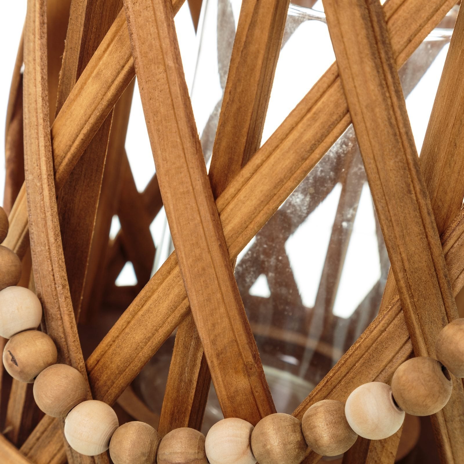 Farol portavelas étnico marrón de madera para salón Sol Naciente