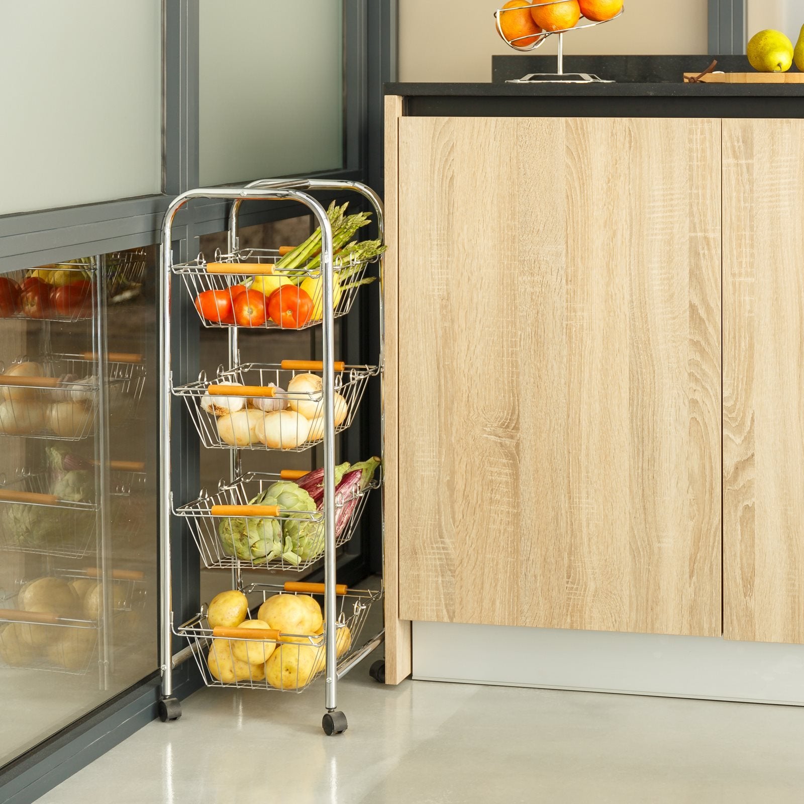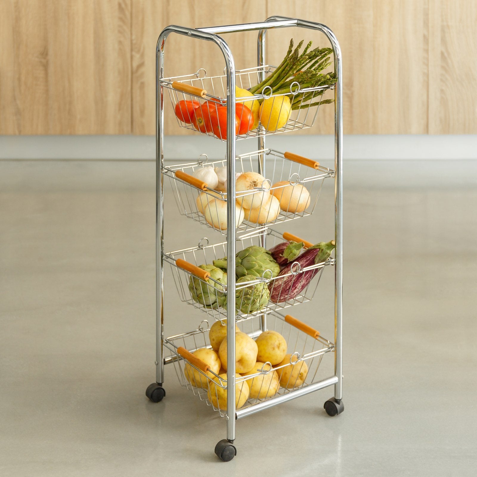 Carro verdurero 4 cestas hierro cromado 27,50 x 26 x 78 cm .
