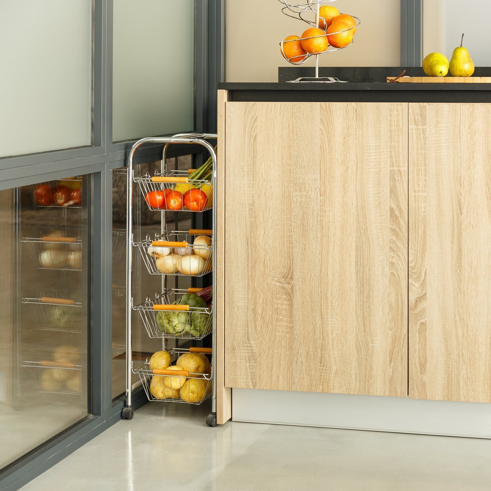 Práctico y funcional carro verdulero moderno plateado de metal para cocina.