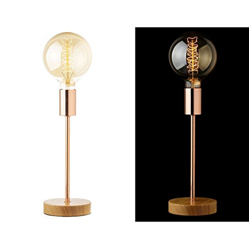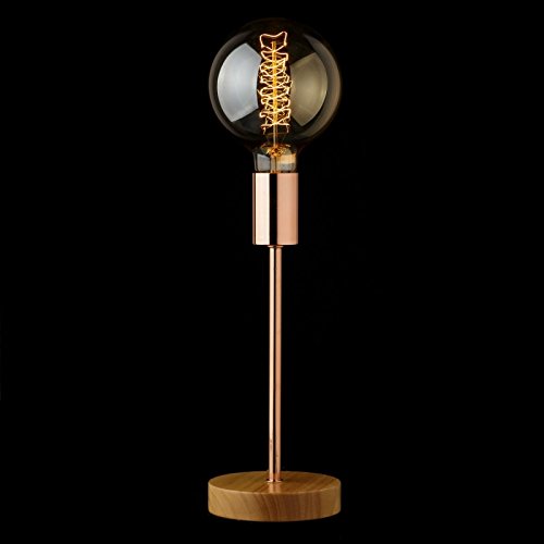 Lámpara de sobremesa industrial cobre de madera para salón.