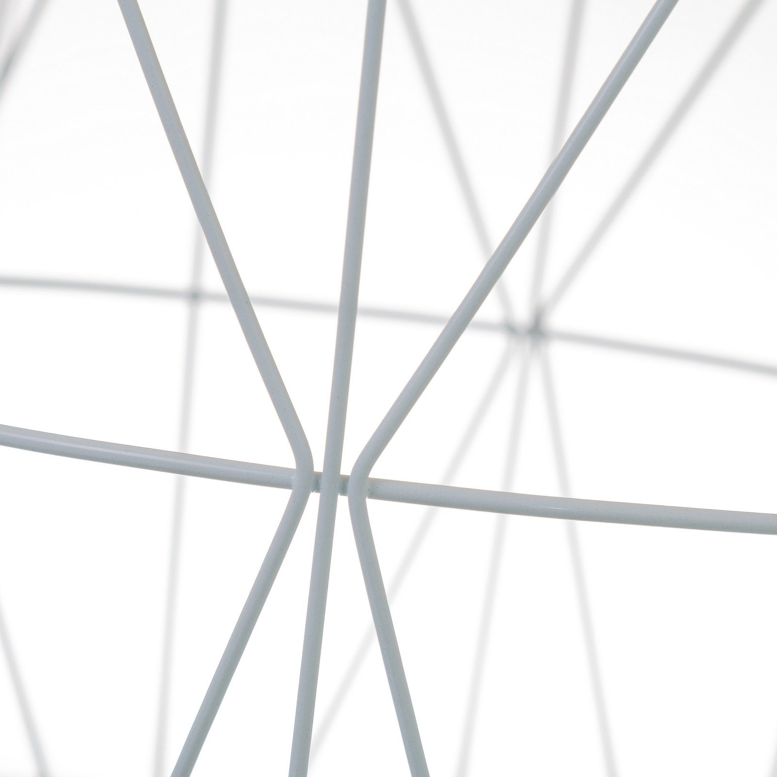 Tiene la base fabricada en metal tubular lacado en blanco con un diseño de forma circular y formando figuras geométricas.