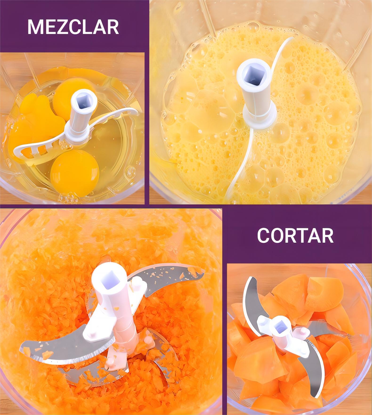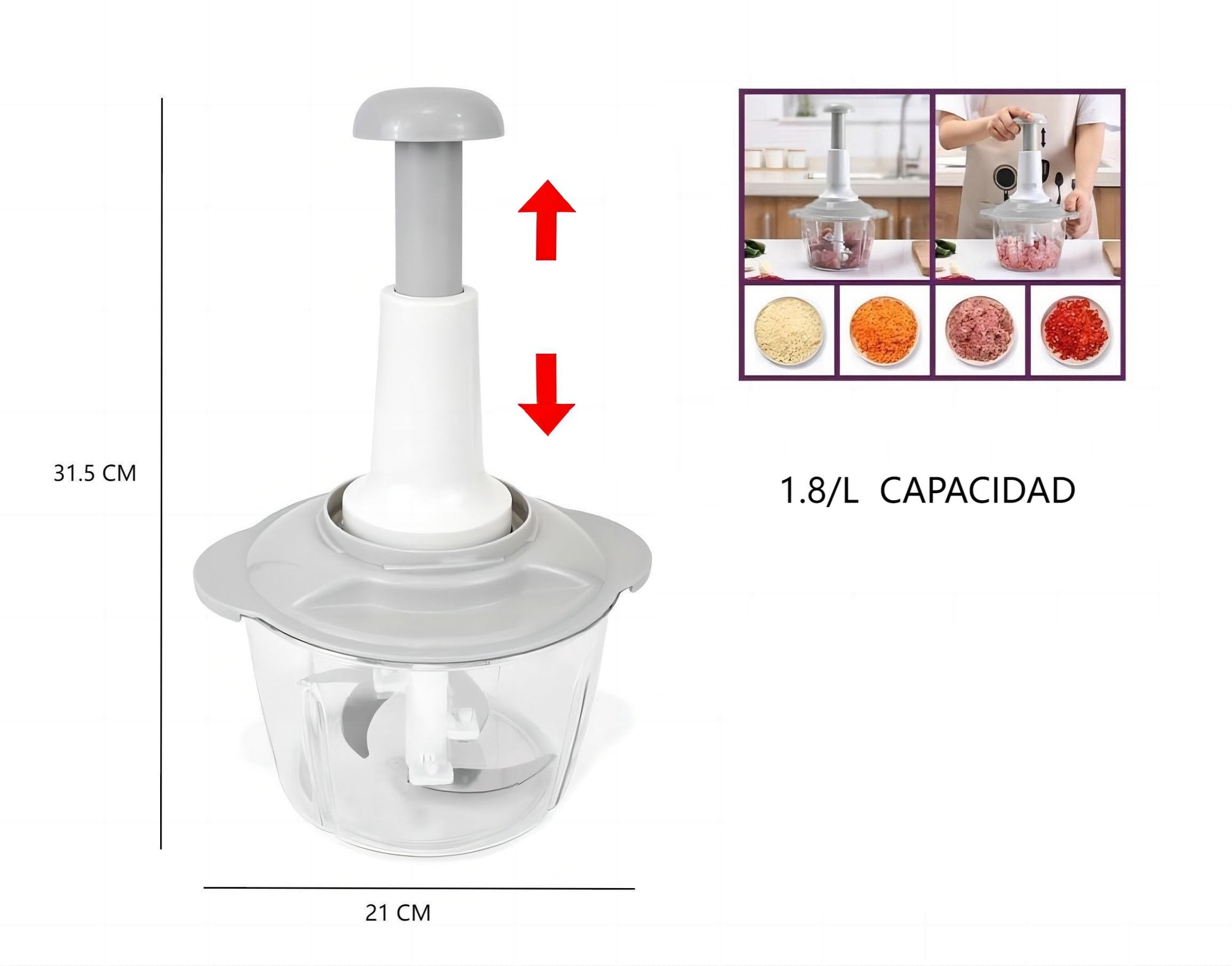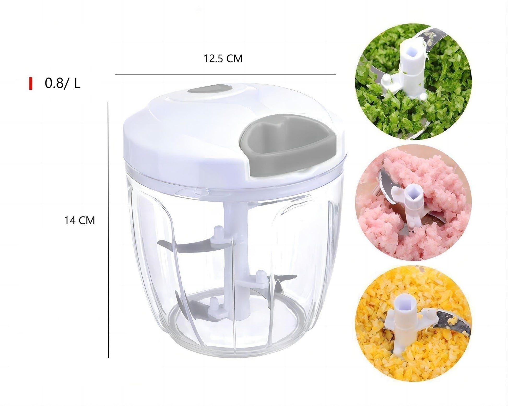Equipada: con cuchillas afiladas de acero inoxidable, nuestra picadora manual corta y pica verduras en segundos, ahorrándote tiempo valioso en la cocina.