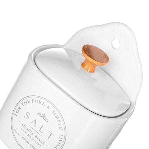 Práctico salero de pared provenzal blanco de cerámica para tu cocina.