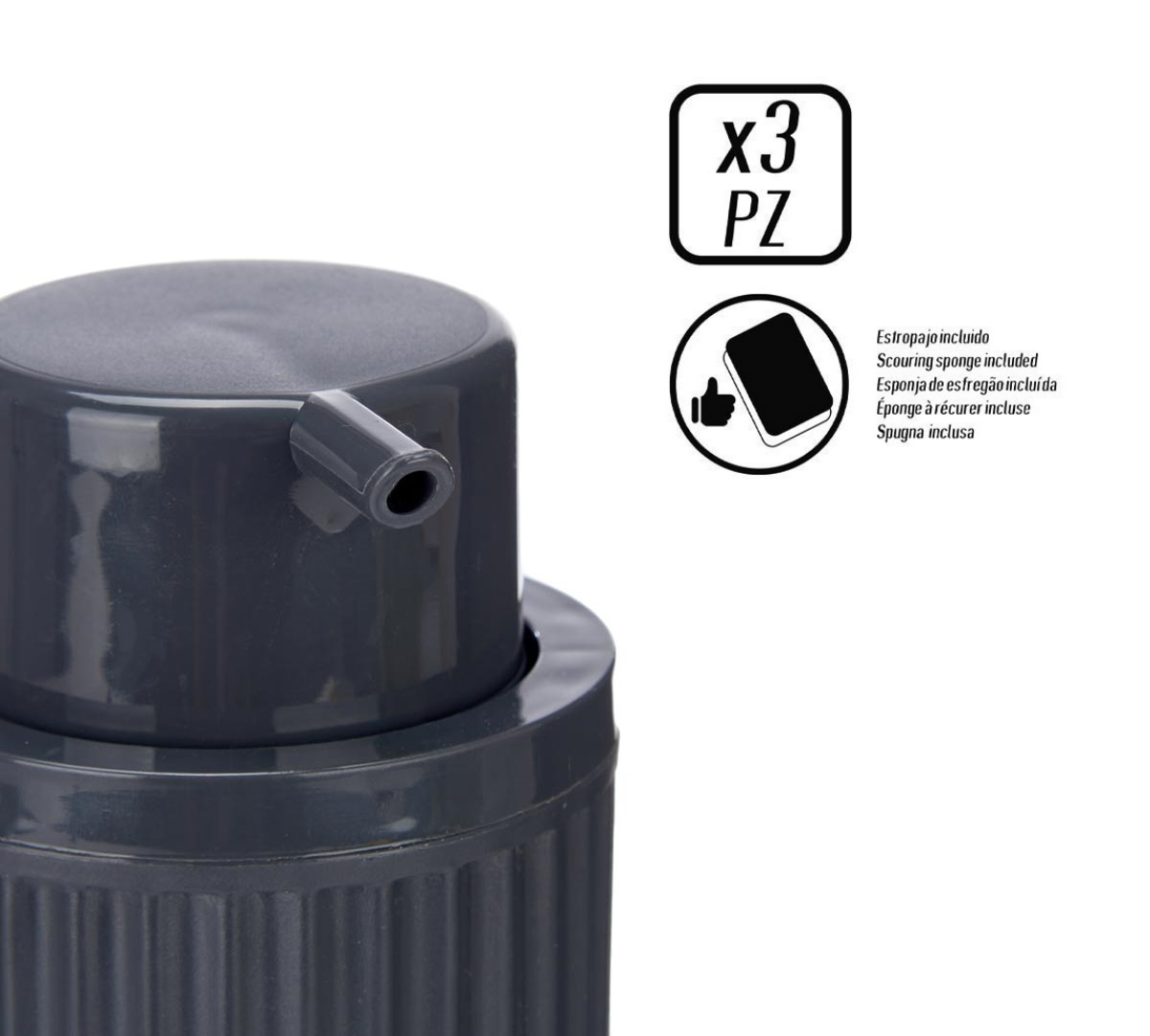 - MEDIDAS: Dispensador de jabón 7 cm x 14.5cm, plato de esponja 2.5cm x 11cm.
