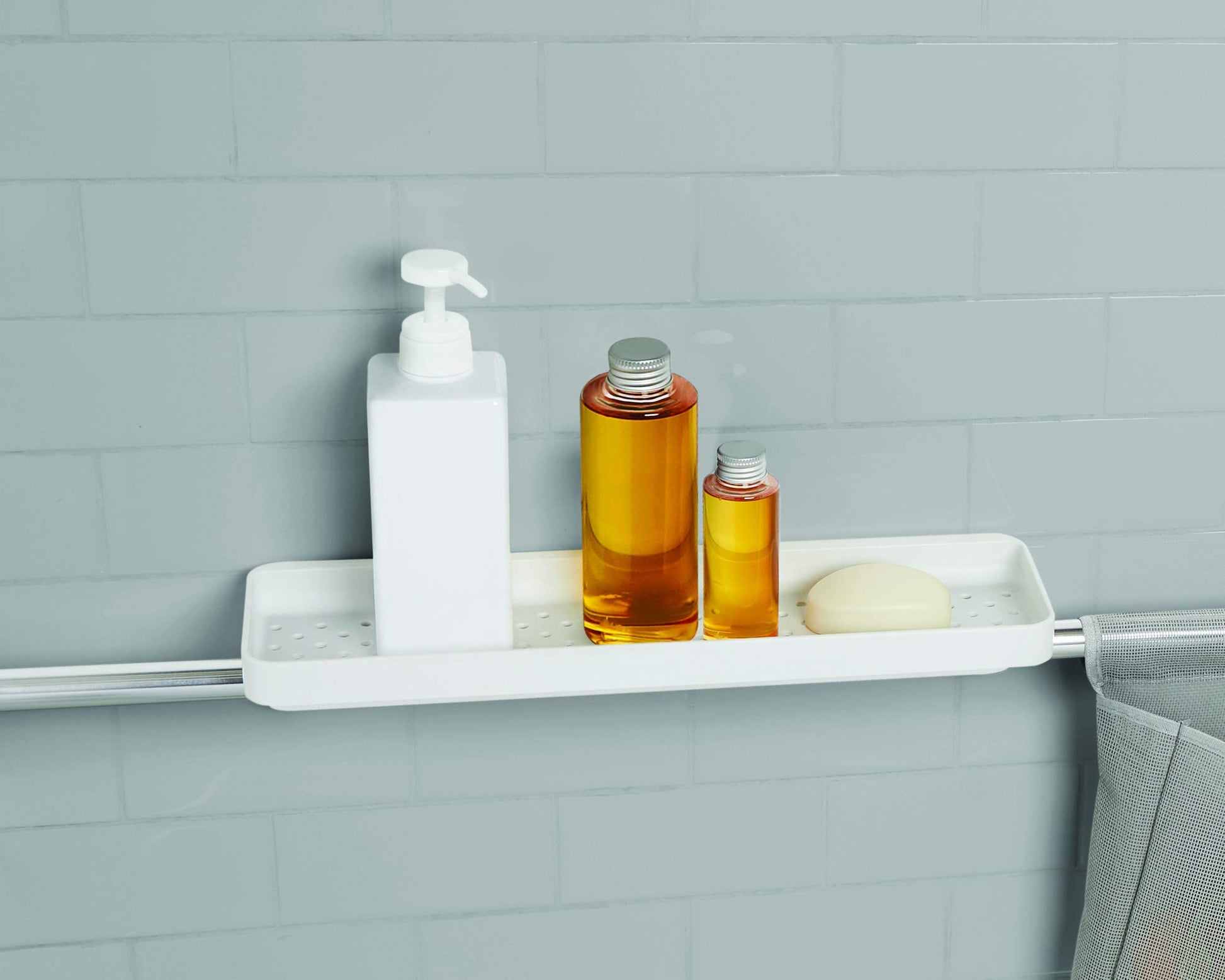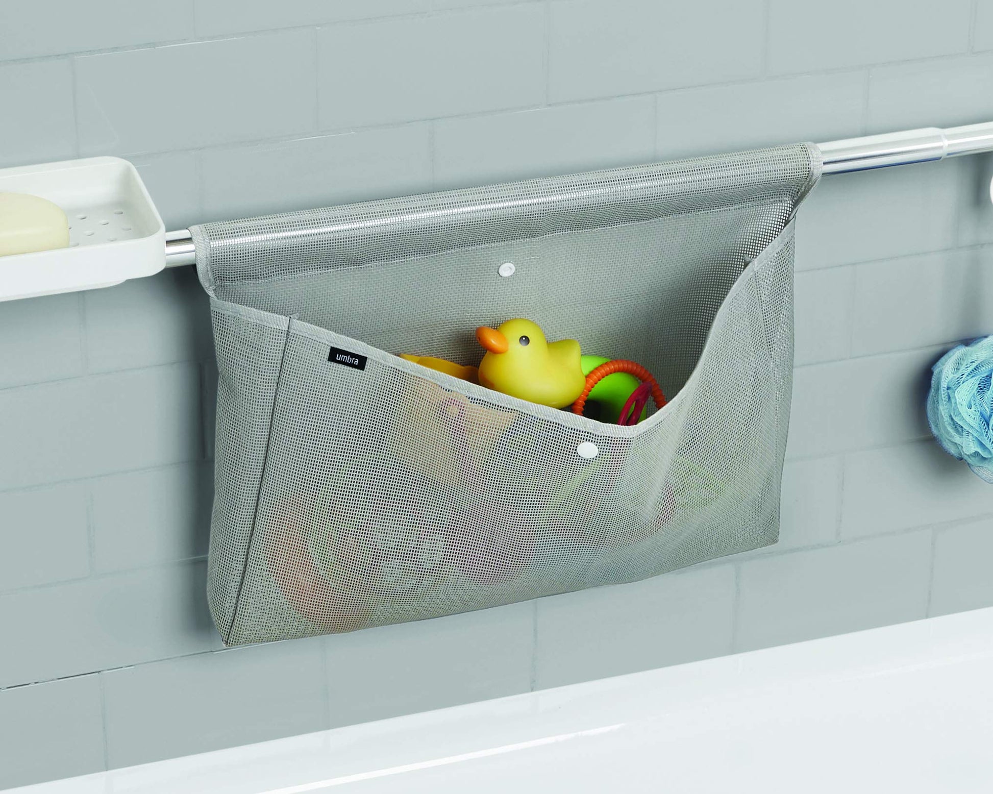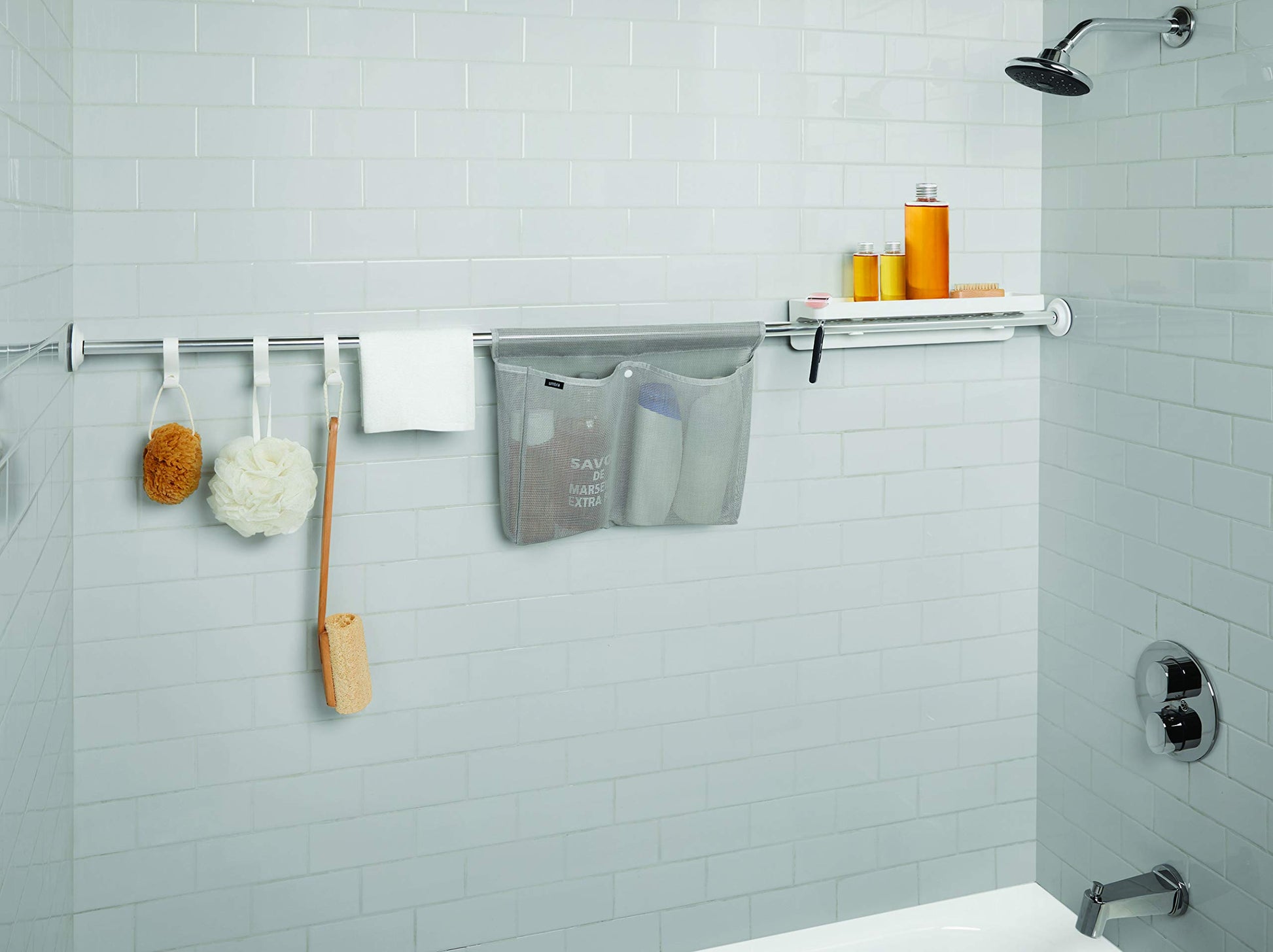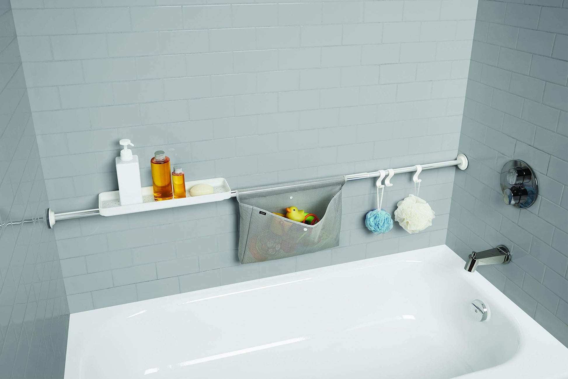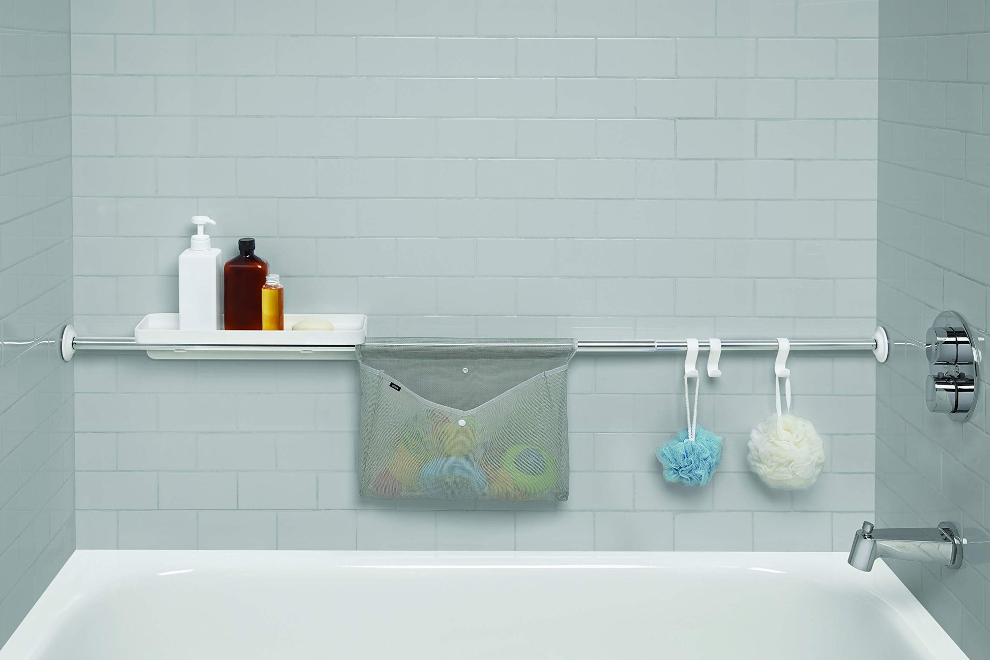 - Fácil de almacenar: la barra de sujeción Sure-Lock fabricada en aluminio inoxidable dispone de un kit de almacenamiento compuesto por un estante con suelo perforado, un bolsillo de red y 3 ganchos para guardar esponja, cepillo y más.