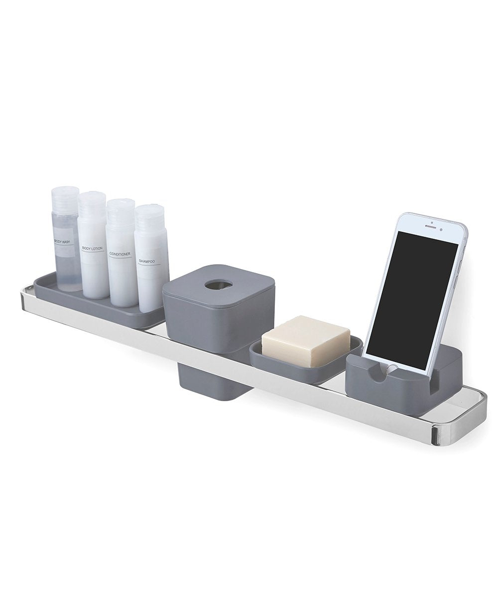 - Nueva incorporación a la línea de accesorios de baño: Este soporte para teléfono, típico en gris carbón, perca proporciona un lugar visible a tu teléfono inteligente, Características lineal, líneas arquitectónicas, y un acabado mate, es suave al tacto y aspecto de cerámica