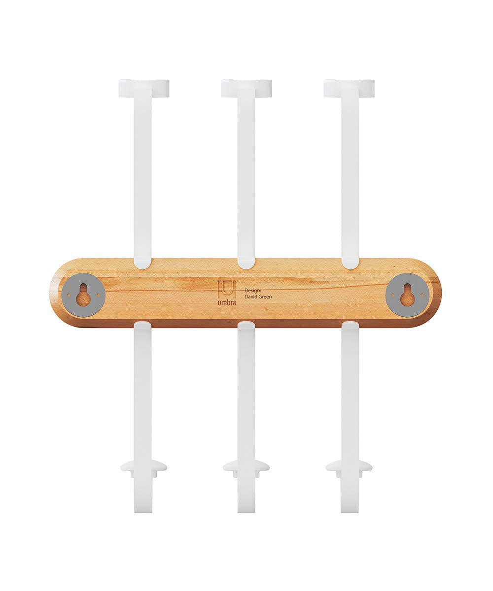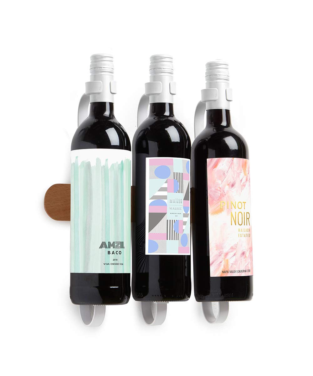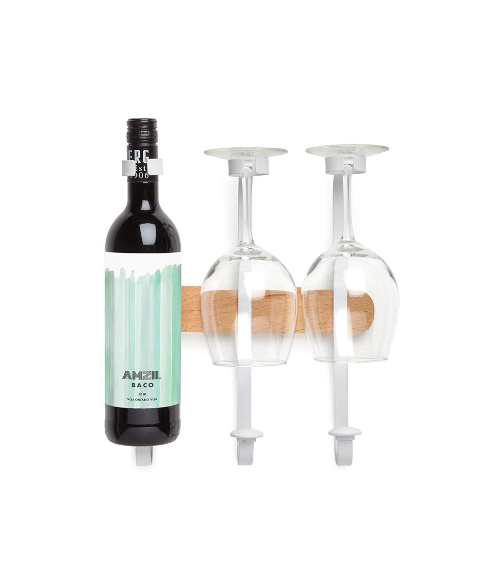 - Superficie moderna: Showvino tiene una parte trasera de madera de haya natural y tres soportes de metal en relieve lacados en blanco. La madera de haya irradia un toque de calor, por lo que también queda genial en la pared de un botellero. Las perchas de metal son de color blanco para que no se destaquen y que tus botellas de vino estén en primer plano.