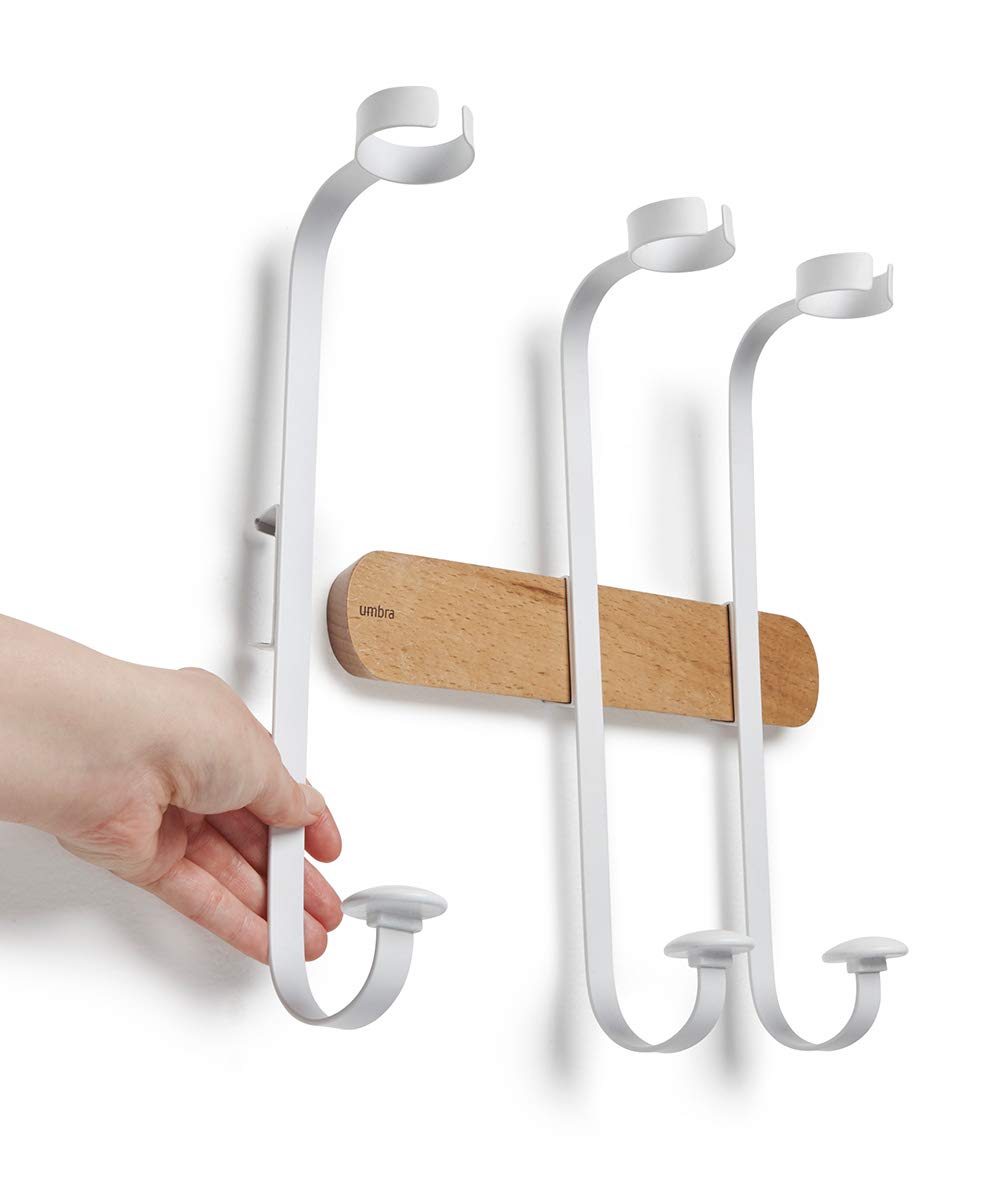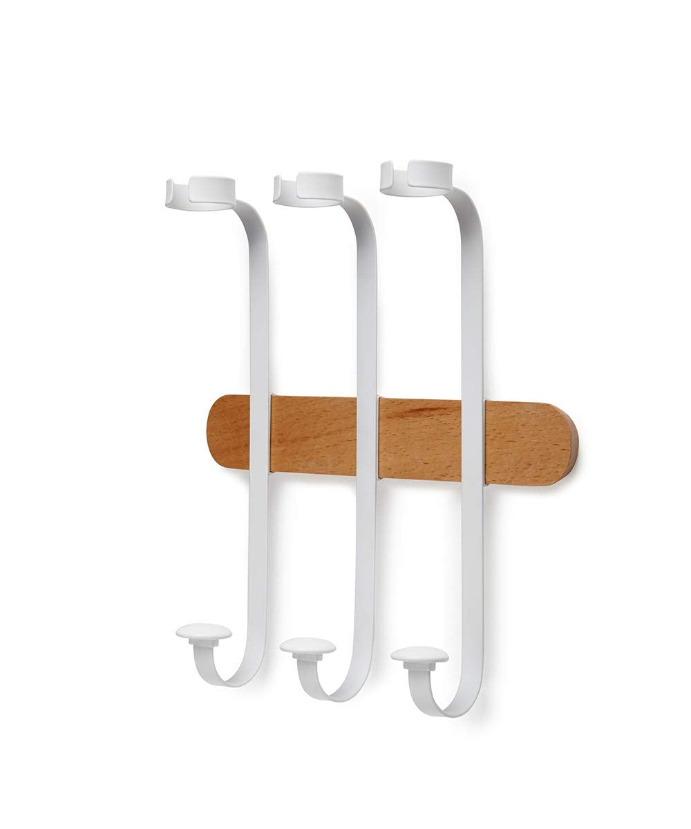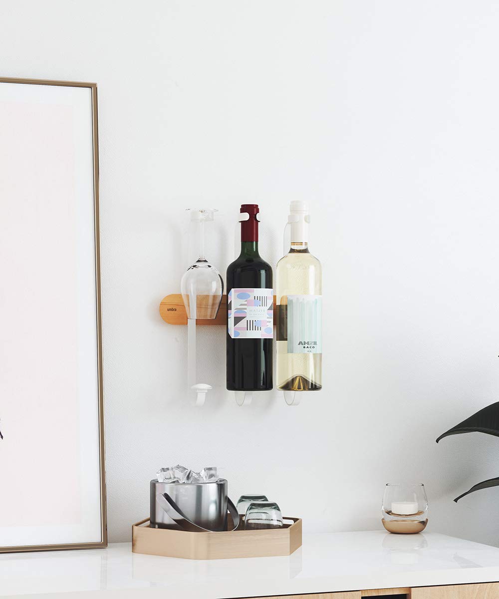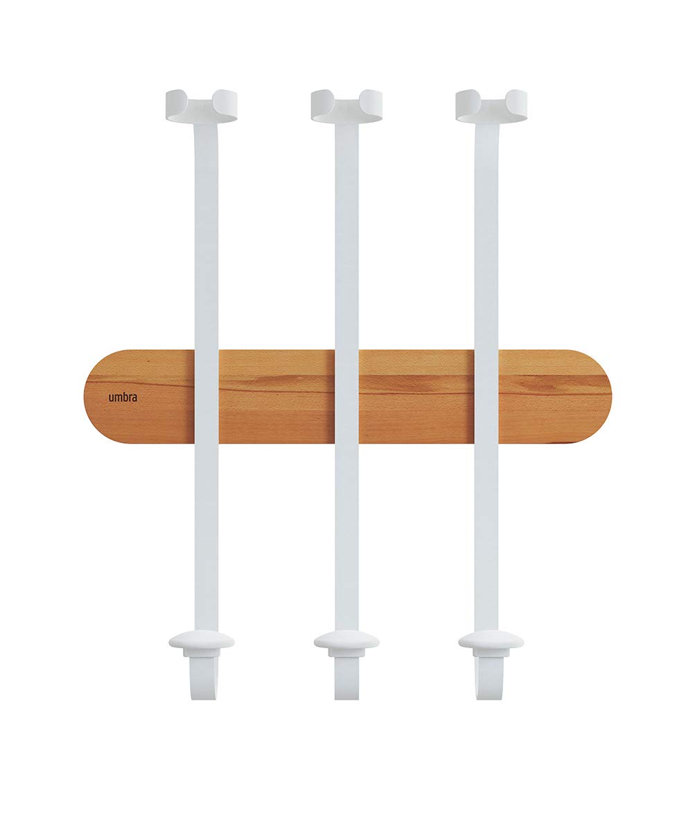 - Superficie moderna: Showvino tiene una parte trasera de madera de haya natural y tres soportes de metal en relieve lacados en blanco. La madera de haya irradia un toque de calor, por lo que también queda genial en la pared de un botellero. Las perchas de metal son de color blanco para que no se destaquen y que tus botellas de vino estén en primer plano.