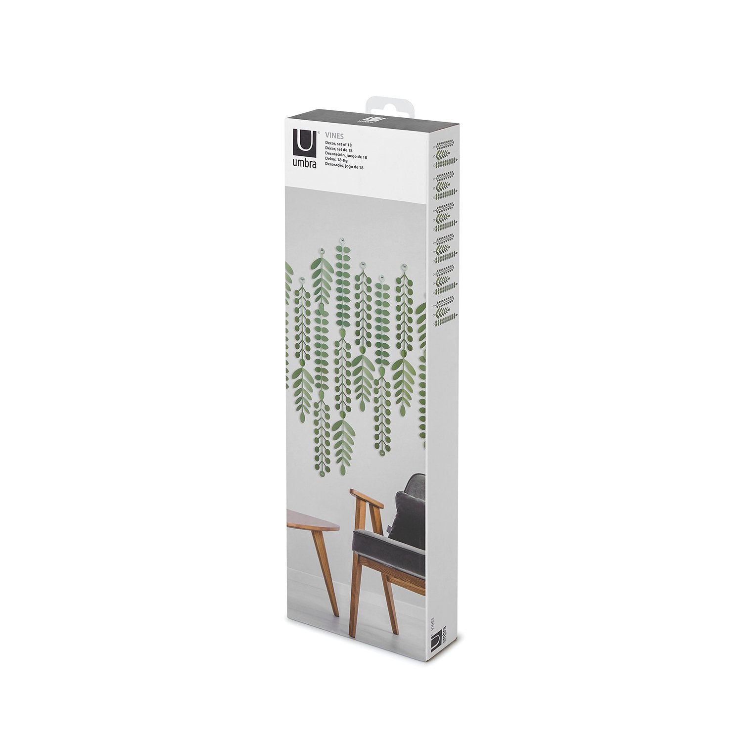 - Viene en color blanco y abeto: disponible en abeto y blanco, las vides de Umbra se adaptan a las vacaciones y todos los días, un paquete viene con 18 vides en tres longitudes (40 x 66 cm, 35 x 6 cm y 28 x 10 cm) que te da la capacidad de crear un aspecto dinámico