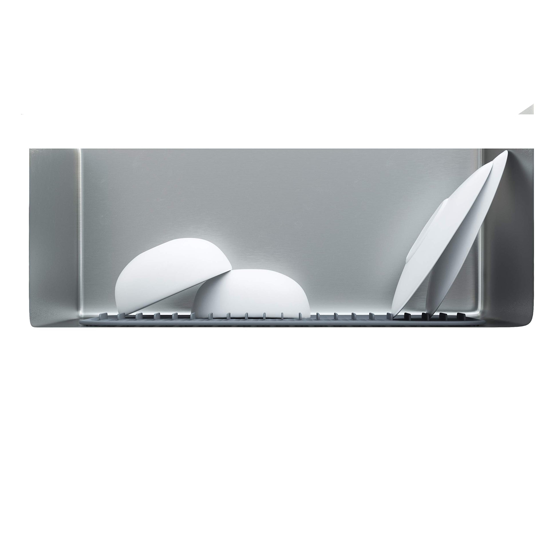 - Mayor construcción: la alfombrilla para fregadero Sling está ligeramente elevada, de modo que la vajilla que se coloca sobre ella se escurre y se seca más rápido.