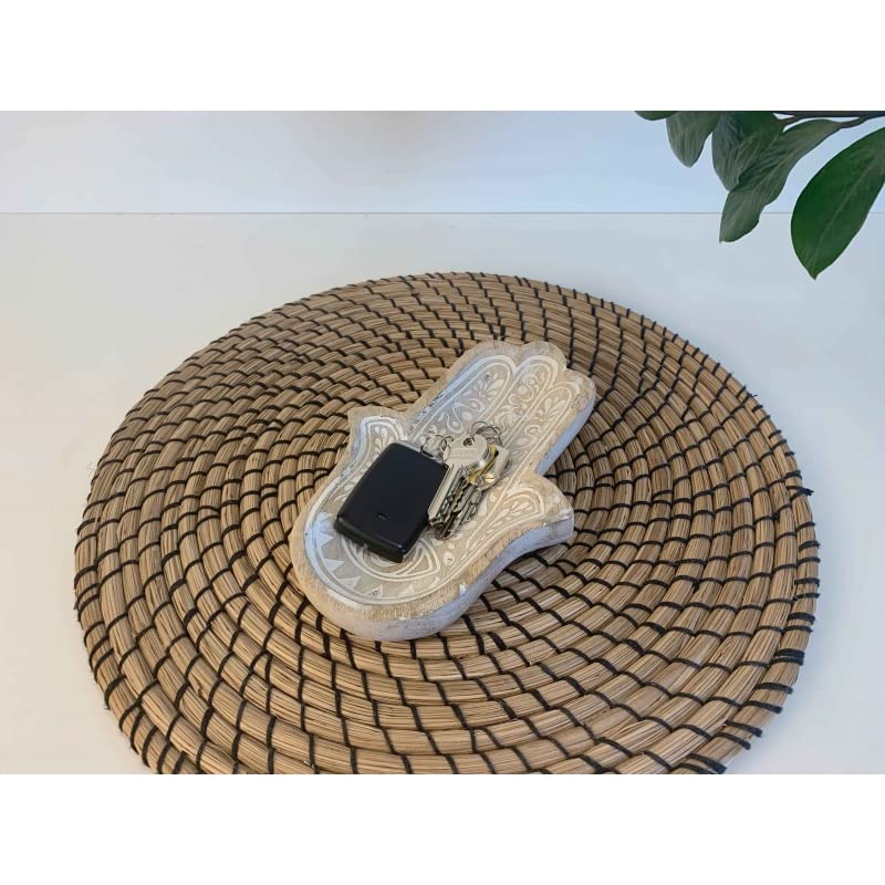 Bandeja vaciabolsillos de madera hamsa mano fatima