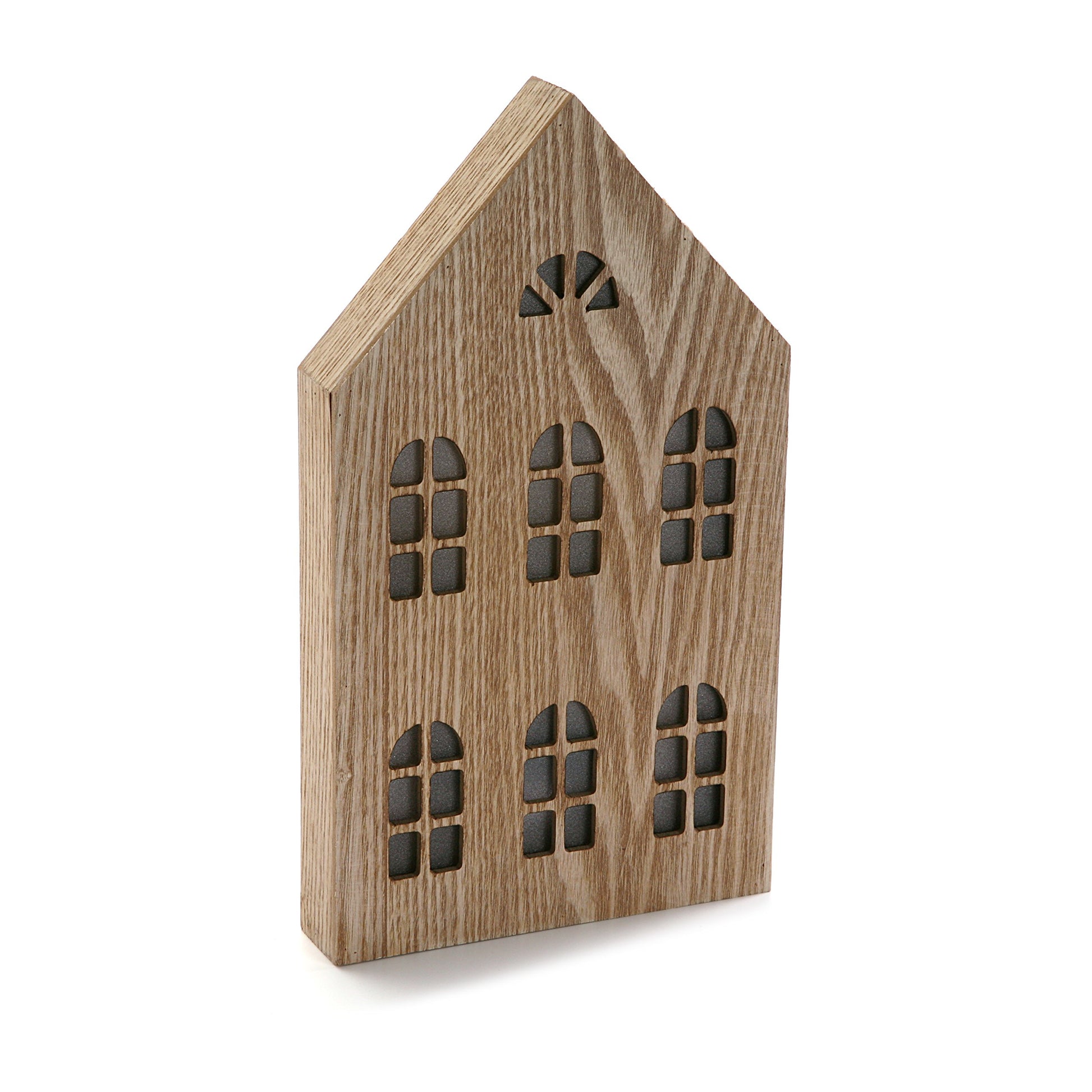 18830107 Caja con Luz Ventanas, Madera, Marrón, 17x3.5x30 cm
