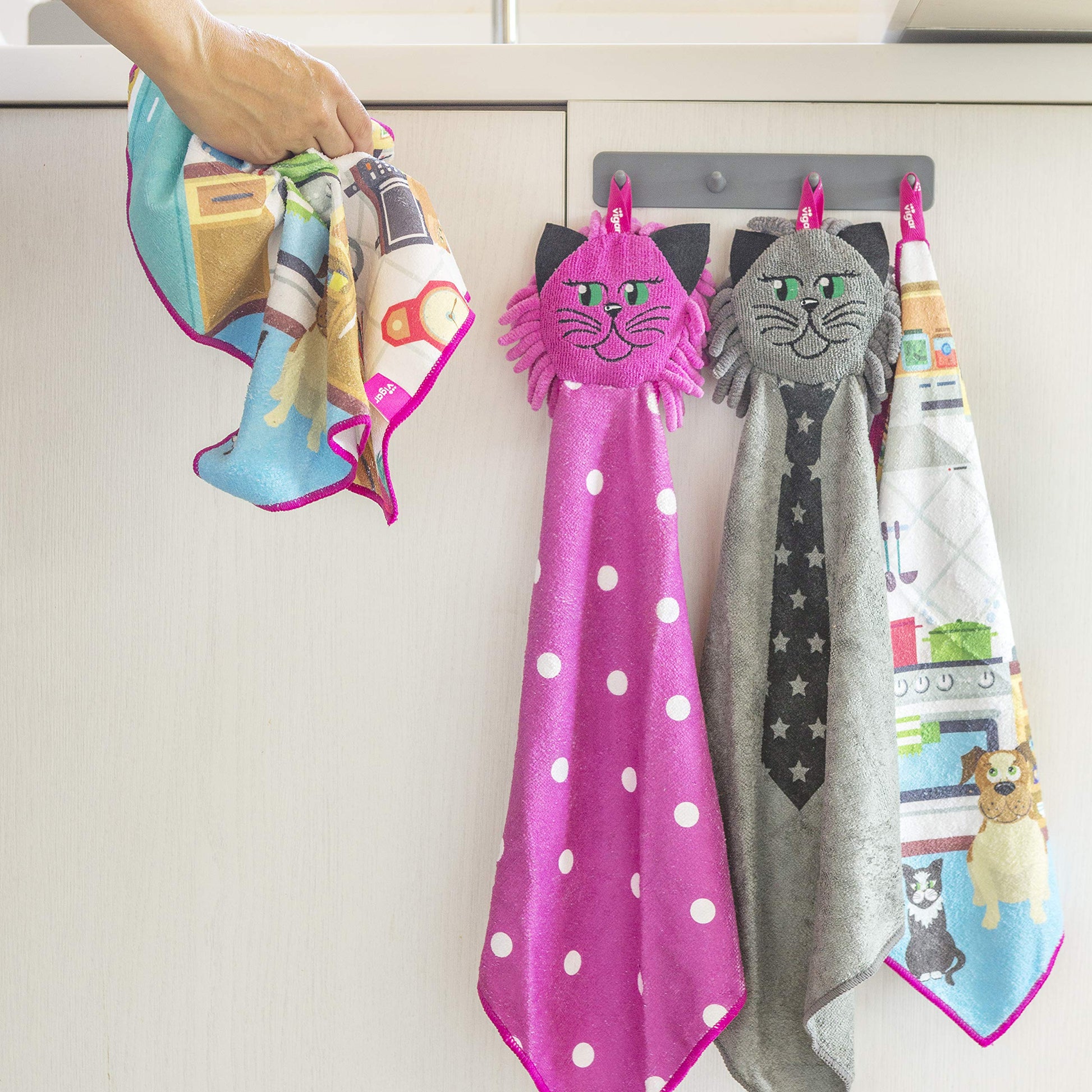Vigar - Félix - Set Paños Secamanos de Microfibra y Colgador de Gancho