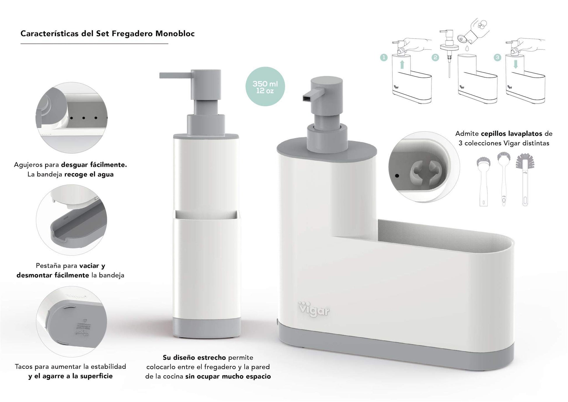 - ORGANIZADOR DE COCINA: El diseño estrecho del organizador permite ahorrar espacio en la cocina, es perfecto para situar entre el fregadero y la pared. Contiene una bandeja extraíble, la cual incorpora pequeños tacos para mayor estabilida