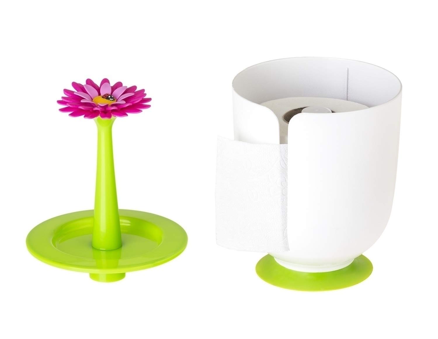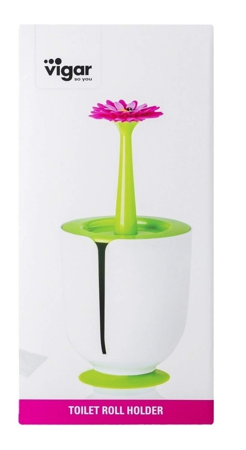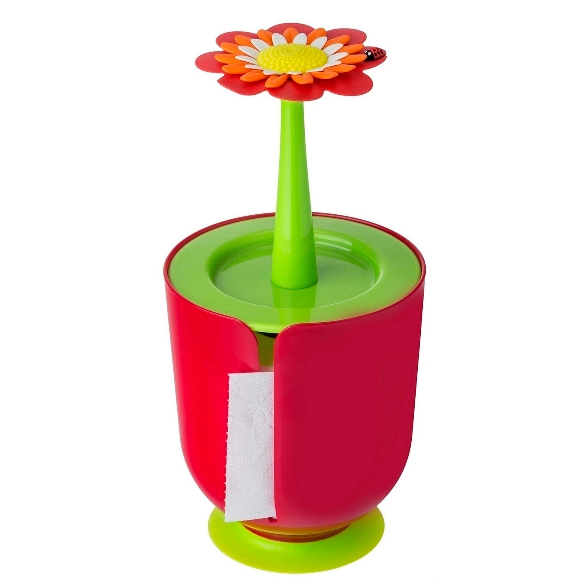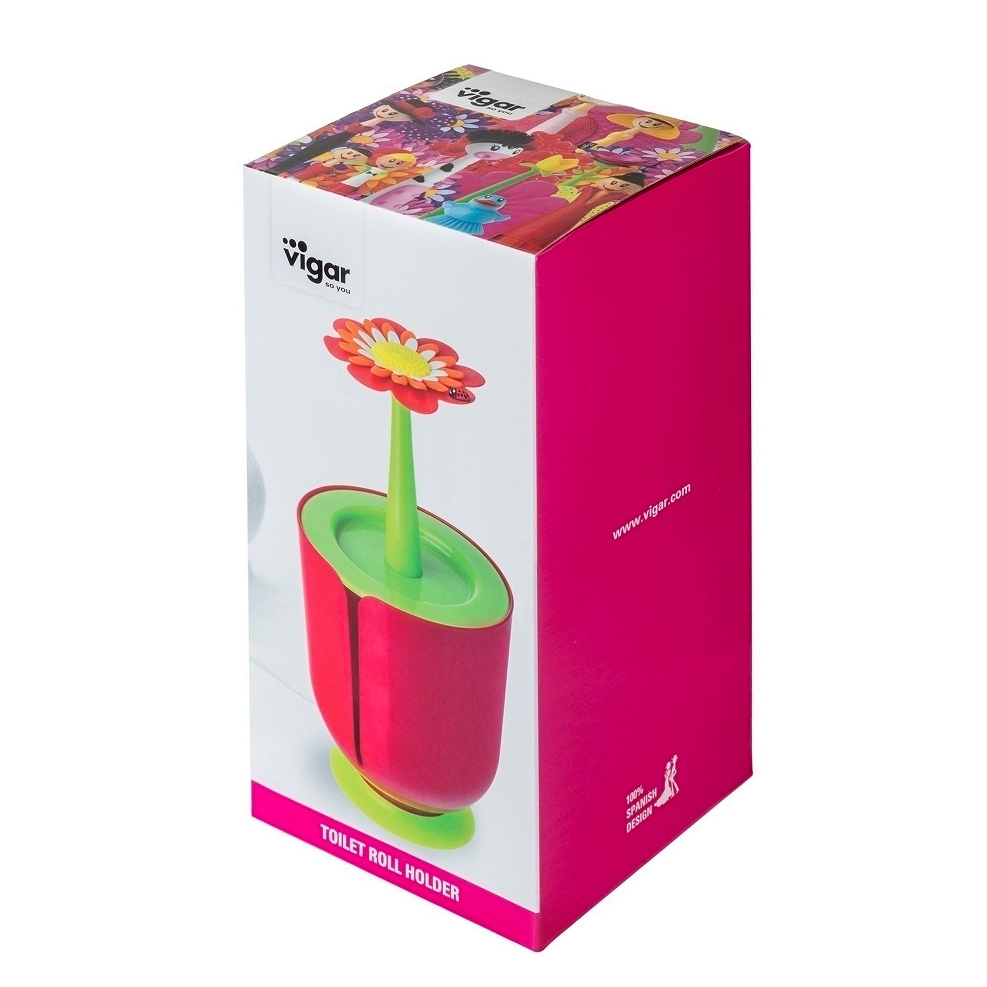 - DETALLES Y MATERIALES: Las medidas del portarrollo de baño son: 14 x 14 x 28.5 cm. Para su fabricación se ha empleado plástico. Tiene capacidad para 1 rollo y presenta un diseño de flores colorido y atractivo que se verá muy bien en cualquier baño.