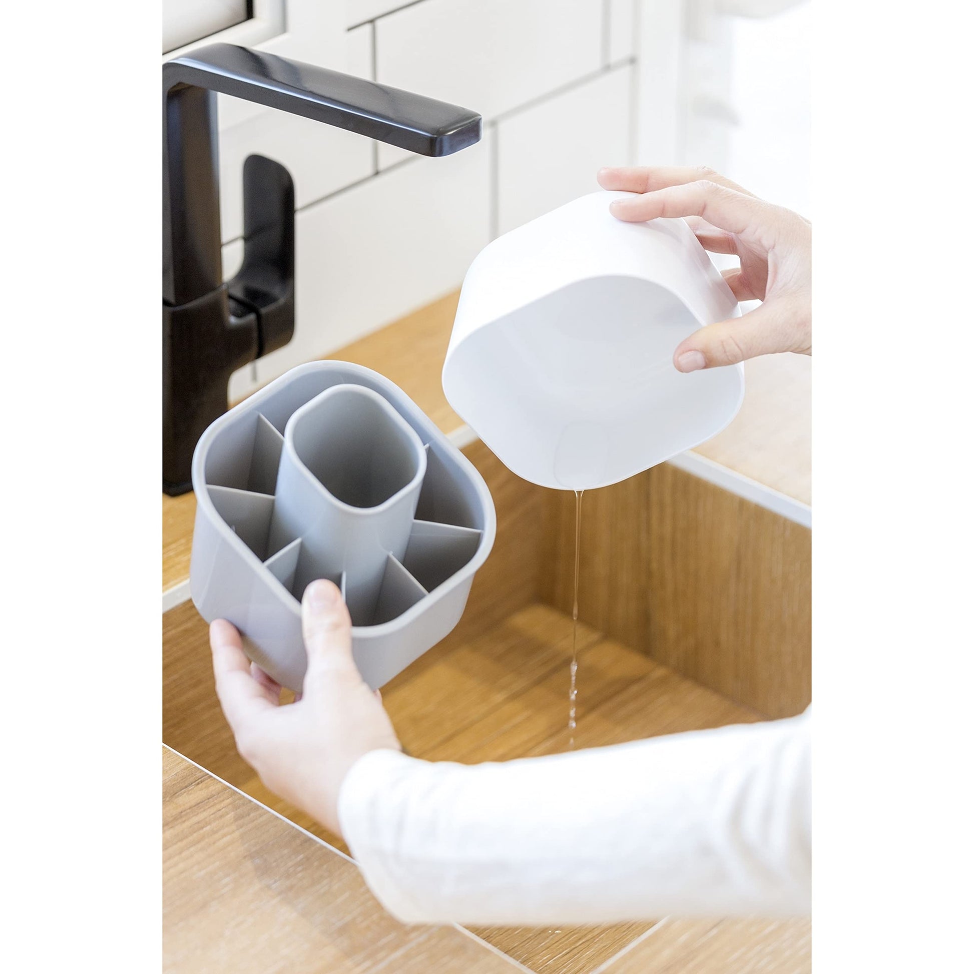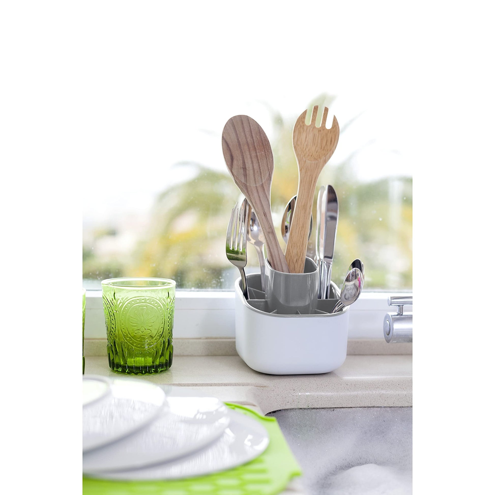 - ESCURRIDOR DE CUBIERTOS COMPACTO: Vasija moderna y minimalista, ideal para secar al aire, utensilios de cocina y cubiertos. El diseño vertical promueve el flujo de aire sin restricciones. Se dobla como un organizador de almacenamiento.