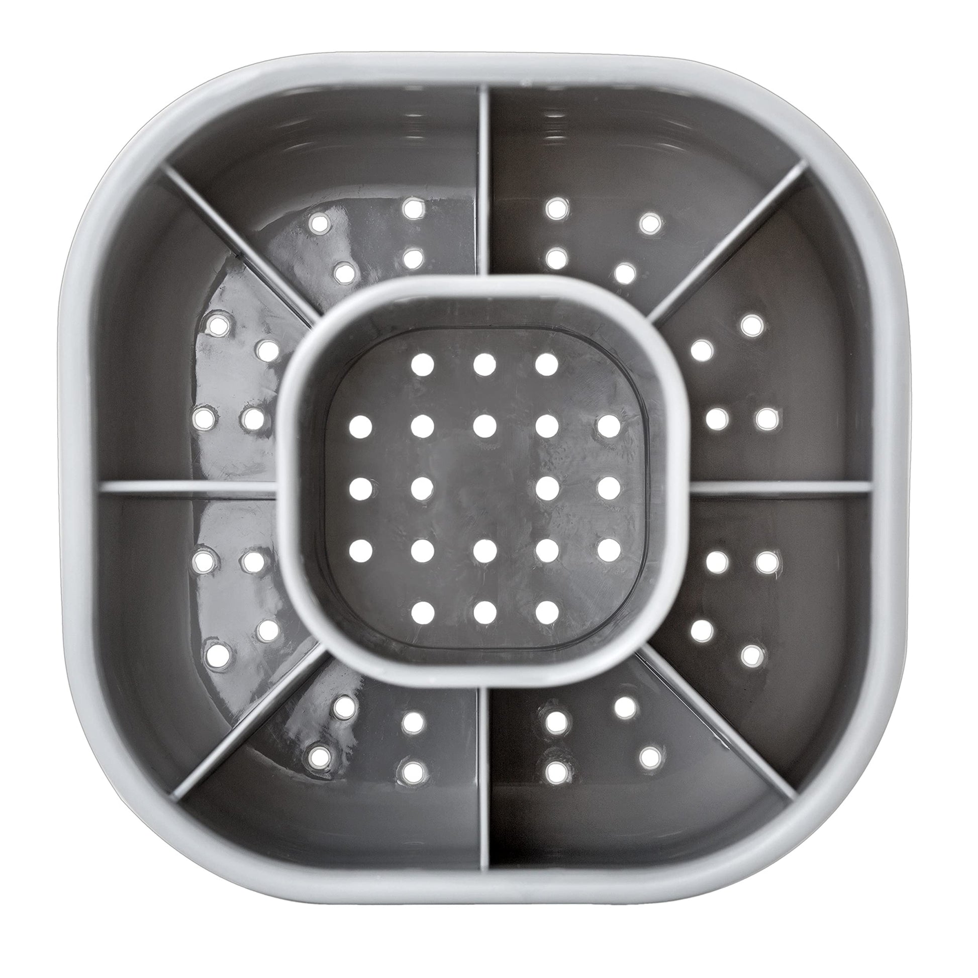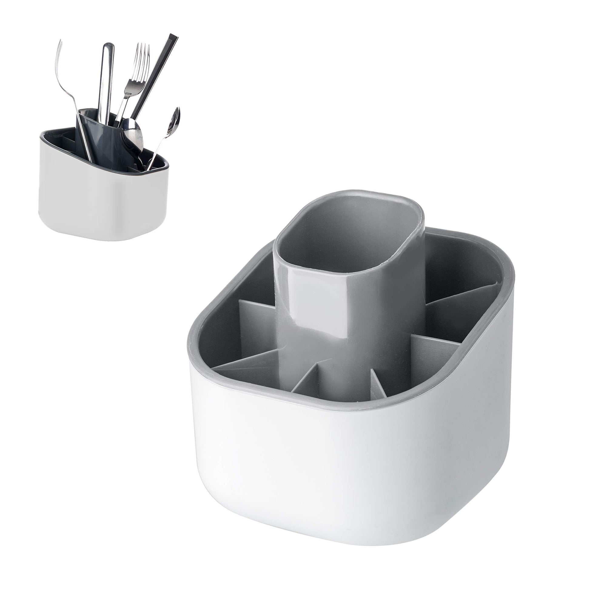 - DETALLES Y MATERIALES: Las medidas del escurridor de cubiertos compacto son: 4-9/10 pulgadas de largo por 4-9/10 pulgadas de ancho por 5-1/10 pulgadas de alto. Para su fabricación se ha empleado plástico acrilonitrilo butadieno estireno (ABS).