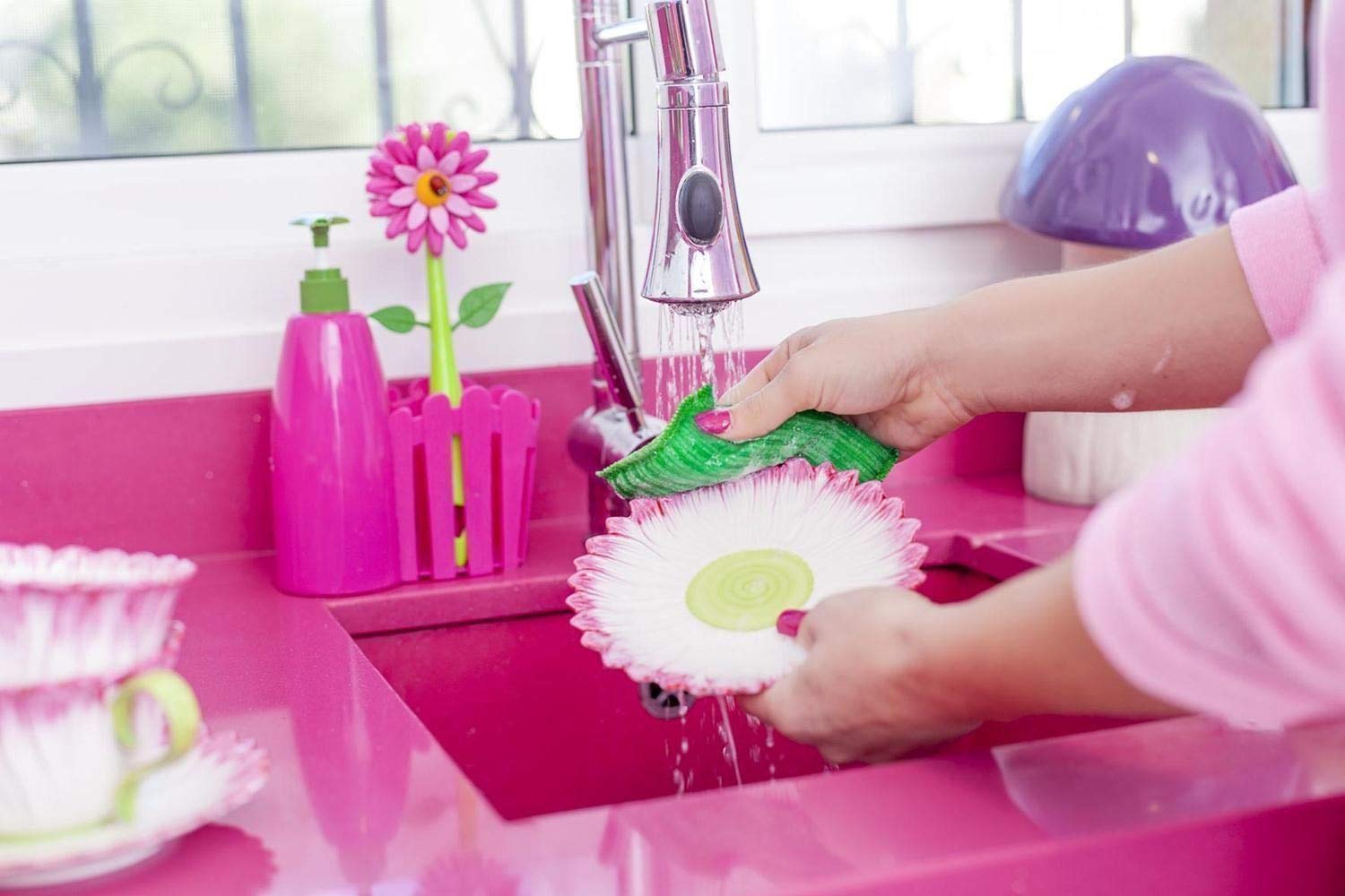 - Incluye estropajo, cepillo lavaplatos y dispensador de jabón automático | Apto para lavavajillas