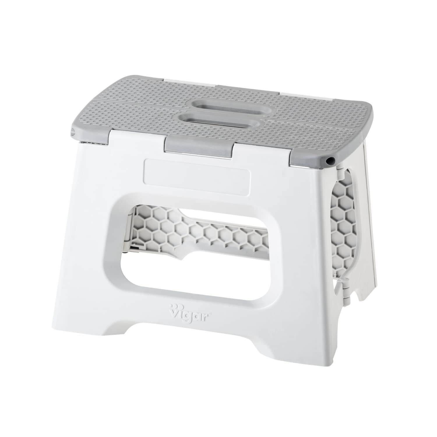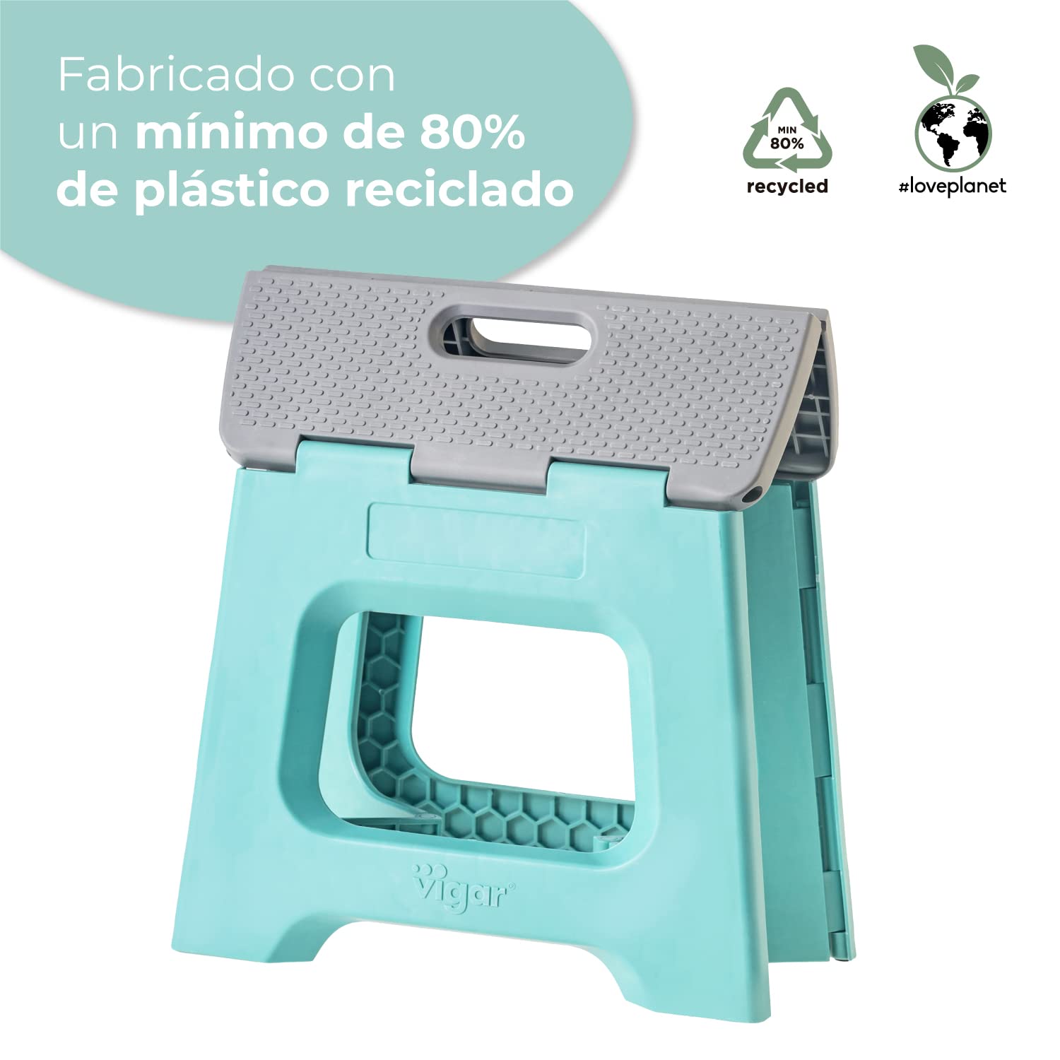 - TABURETE PLEGABLE COMPACT: Taburete plegable con superficie y base antideslizantes para evitar resbalones. Contiene un asa central con doble función para un transporte más fácil y su plegado total en segundos con una sola mano.