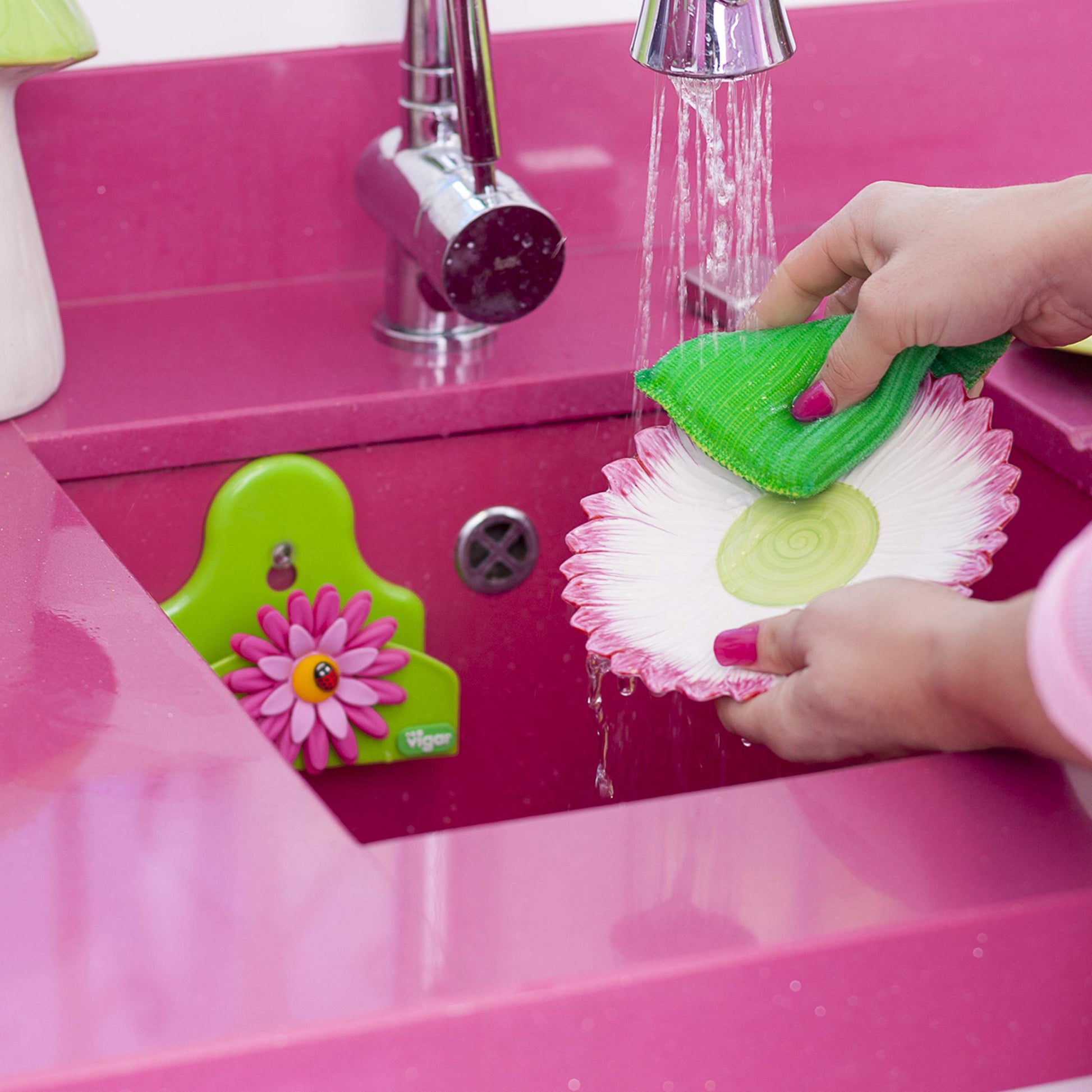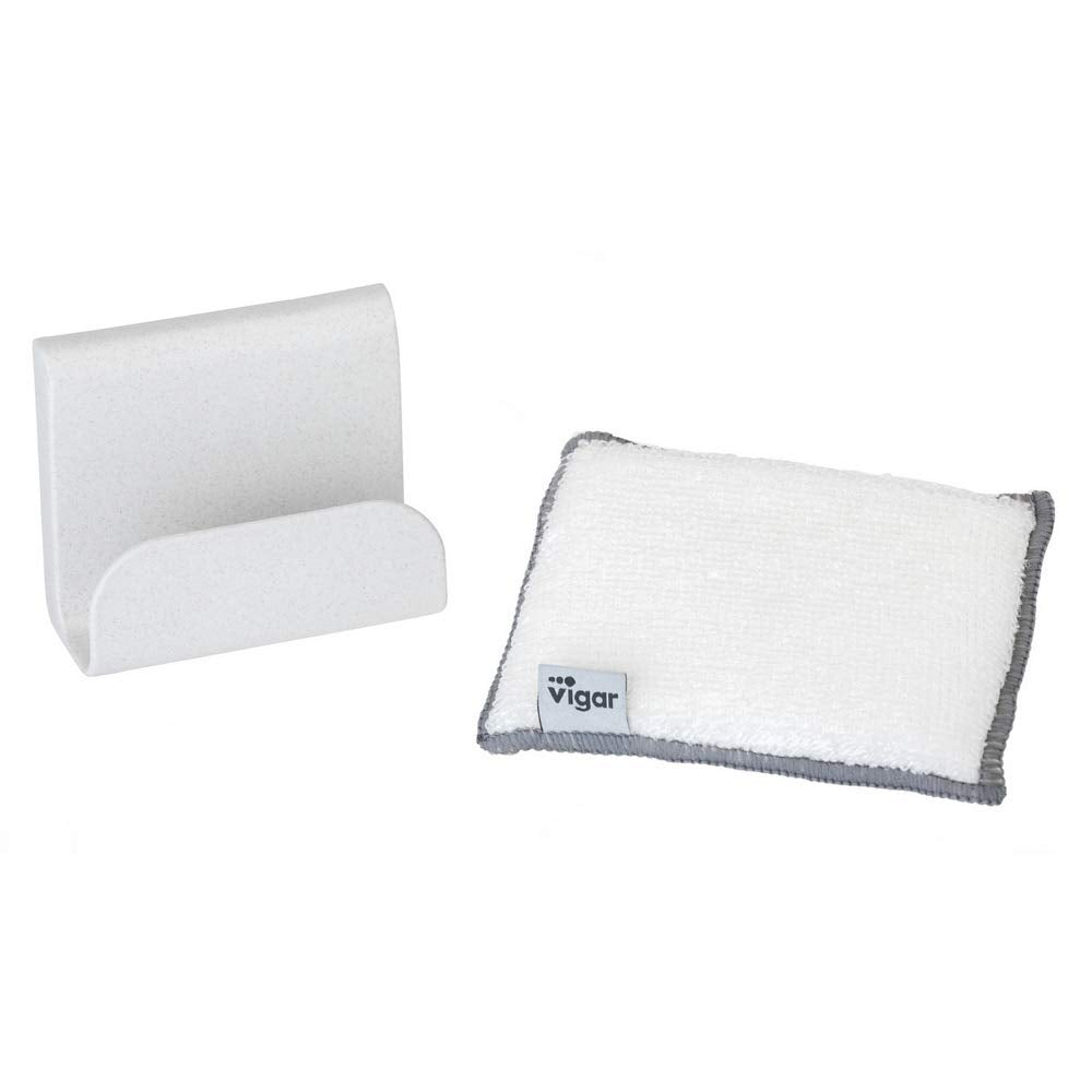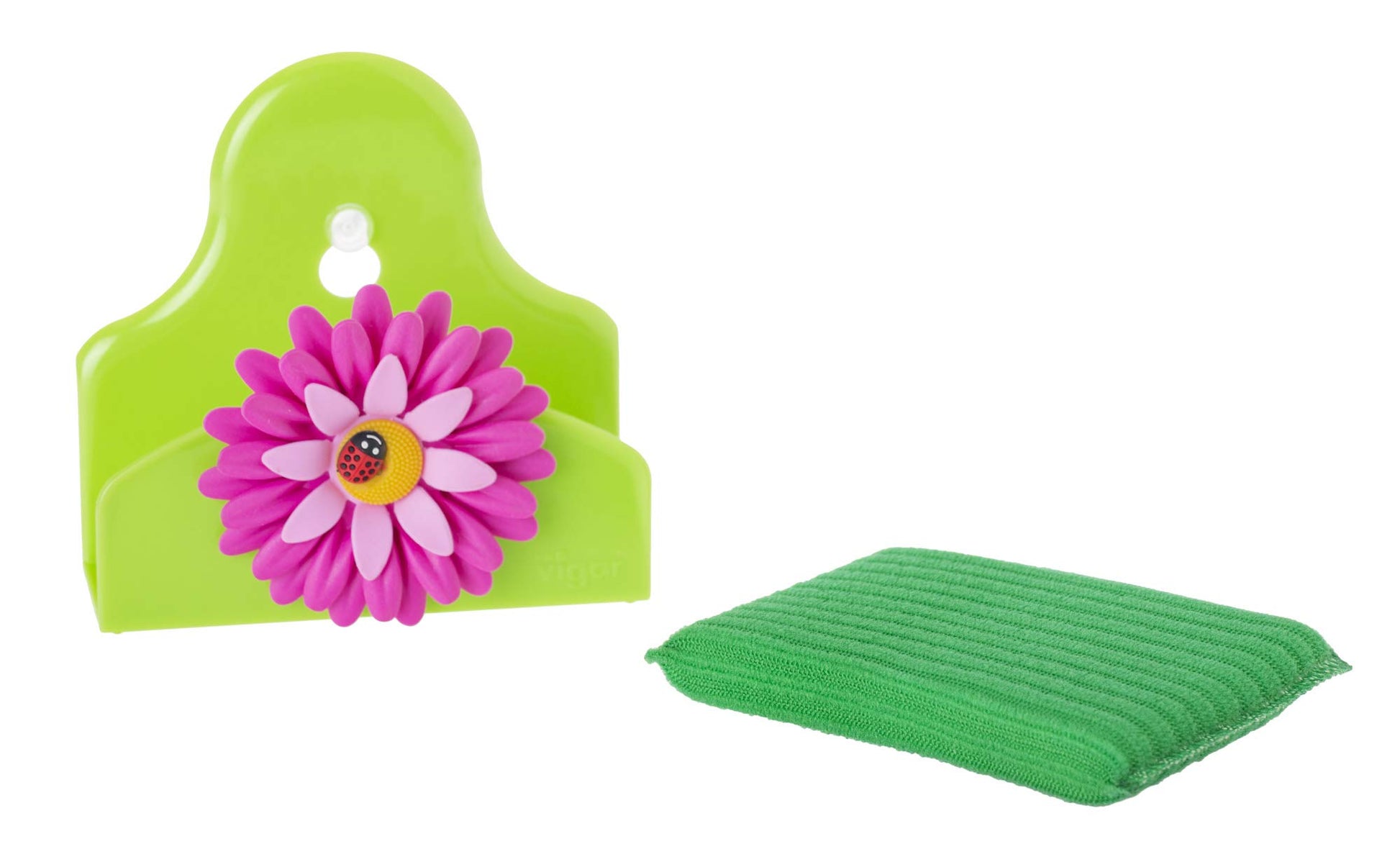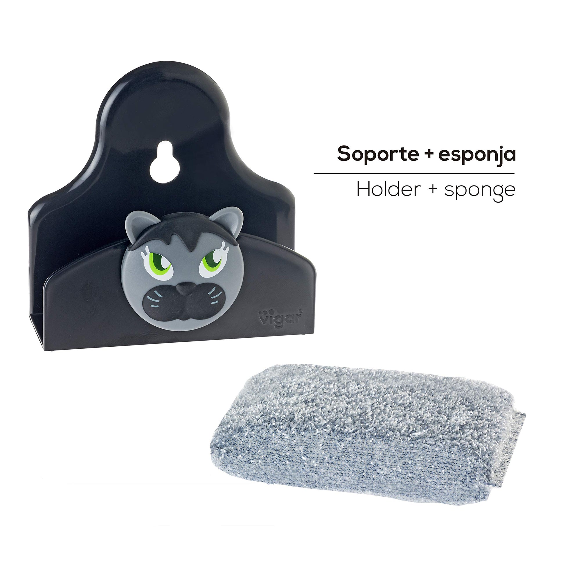 - PORTA ESPONJAS CON VENTOSA: Perfecto para dejar los estropajos y bayetas, y tenerlos siempre a mano Sistema de ventosa para colgarlo en la pared o en el fregadero y tenerlo siempre a mano. Incluye esponja que limpia y seca sin dañar la vajilla.