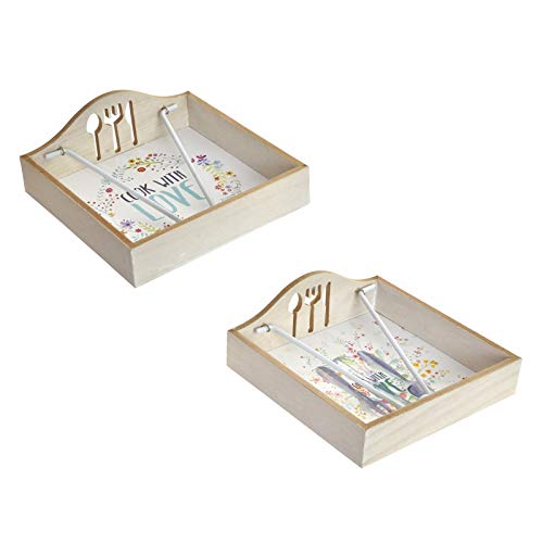 Servilletero Mesa para servilletas Papel en Madera Decorada Cook with Love (Disponible en Dos Modelos) 18x18x7